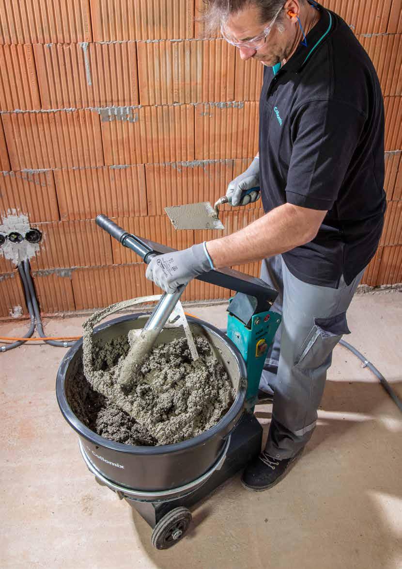 Bevor wir ein Produkt entwickeln, lernen wir zuerst alles über die Verarbeitung des zu mischenden Materials. Erst wenn wir rundherum alle Herausforderungen verstanden haben, können wir unsere Produkte so ausgefeilt designen, dass sie den Handwerkern wirklich bei der Arbeit helfen. Dazu arbeiten wir intensiv mit den Herstellern der Bauchemie zusammen.