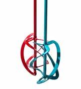 Starker Zwangsmischer mit gegenläufigem Mischwerk für anspruchsvolle und kraftraubende Mischarbeiten, für zeitsparendes und gründliches Mischen. DUO-Maschinen nur mit den dafür passenden Mischwerkzeugen MKD benutzen.