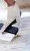 Platzieren Sie die Reißleiste auf Ihrem Kübel. Sack drauf werfen, egal ob Papier oder Kunststoff, und das Material landet genau dort wo es hingehört – im Eimer. Ganz ohne Messer.
