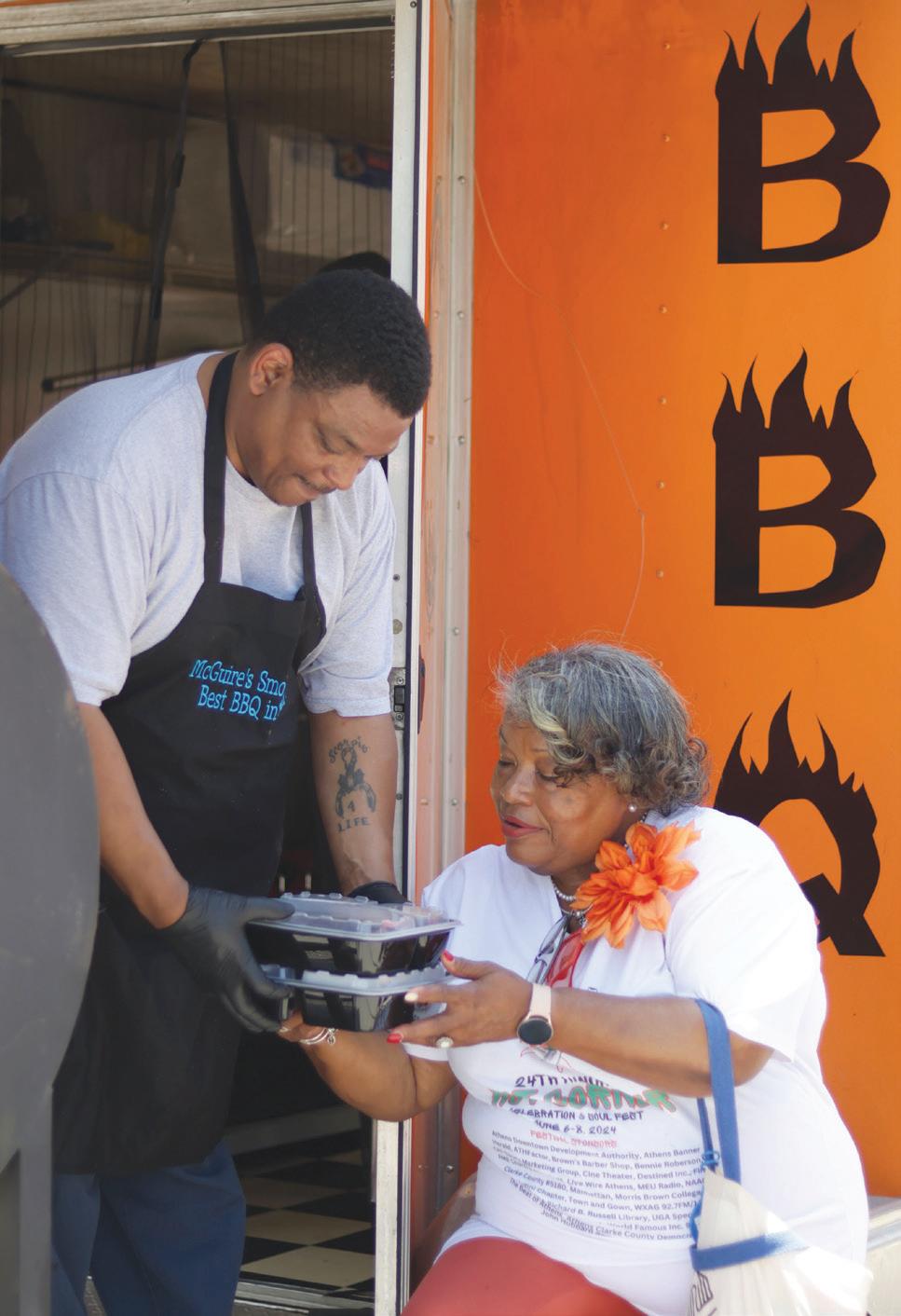 Barbara “Lady B” Sims, an event organizer, receives food samples from McGuiere’s Smokin BBQ during the Hot Corner Celebration and Soul Food Festival in Athens, Georgia, on Saturday, June 8, 2024. Hot Corner Festival celebrates Black culture and history in Athens. PHOTO/JAXON MEEKS