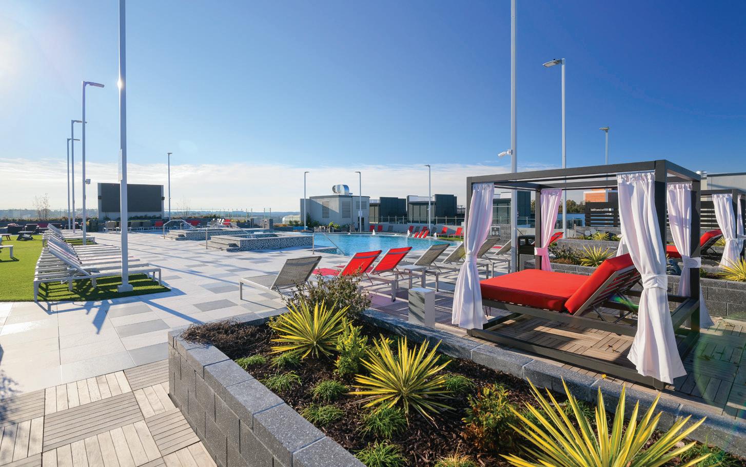 The lush lawn between the Myers, Mary Lyndon and Rutherford residence halls is where TV networks often stage remote broadcasts — like ESPN’s College GameDay — and there’s plenty of greenspace left for cornhole and other games. The quad is a little over a quarter mile from the stadium, and there’s parking nearby at South Deck.