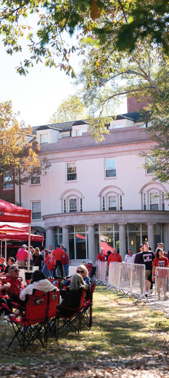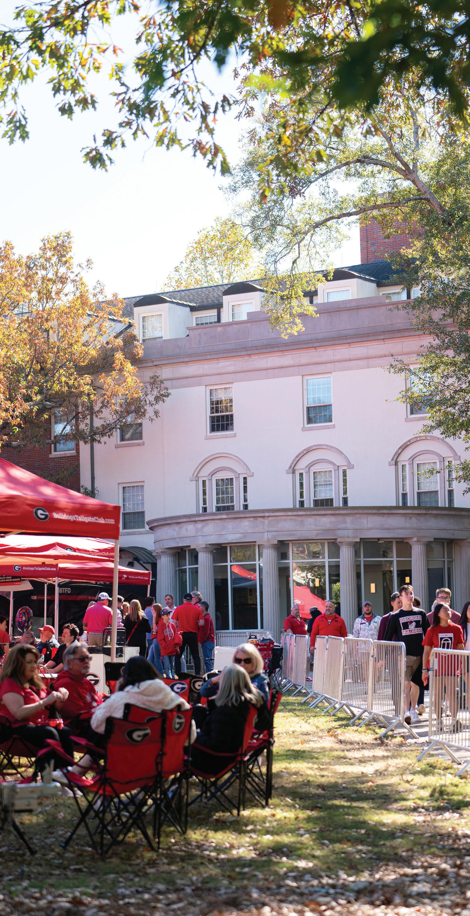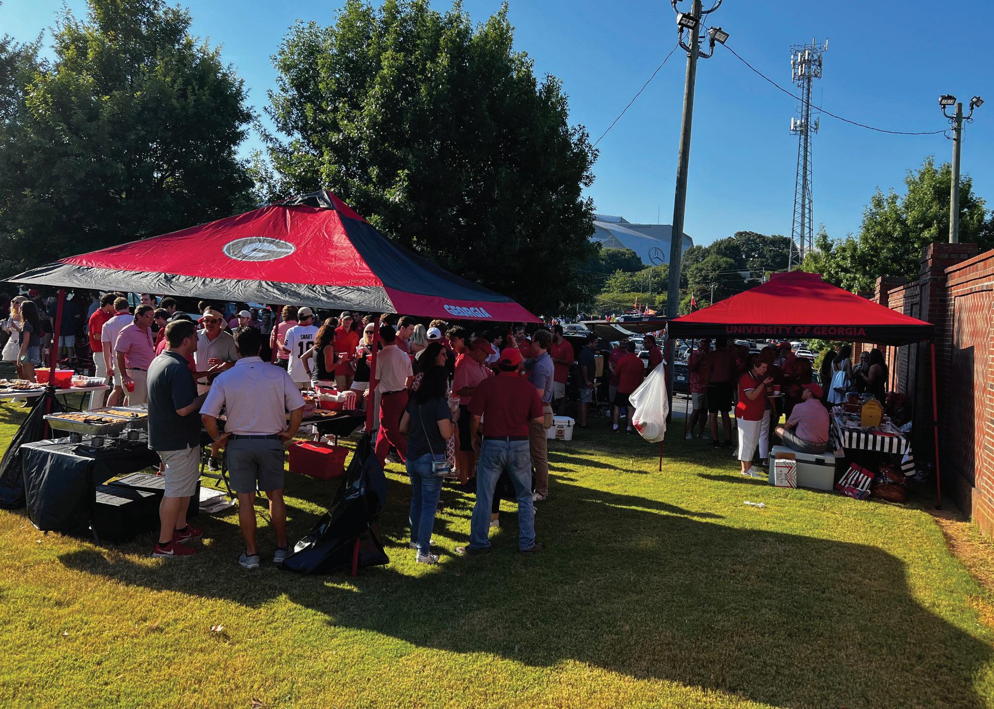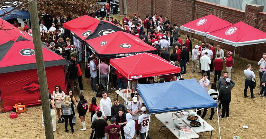 Tailgating among the shady oaks and iconic university landmarks of North Campus gives you the perfect opportunity to visit Herty Field, the birthplace of Georgia football, or ring the Chapel Bell to celebrate a Bulldog victory. It’s spacious and just a half-mile walk to the stadium, with parking at the North Campus Deck and side lots. Just be sure to familiarize yourself with the rules for this area (see next page).