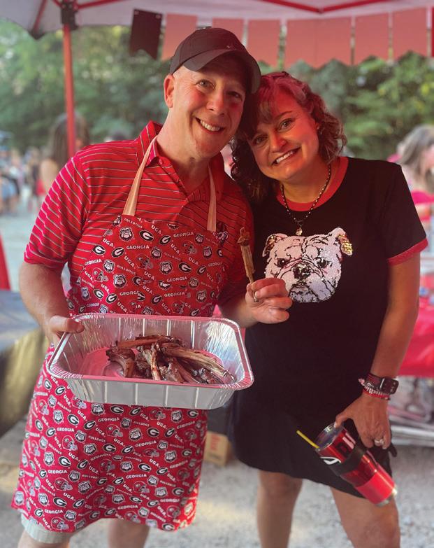WHAT MAKES IT THE ULTIMATE TAILGATE: Joel and Roben Turry, who are both UGA alums, started tailgating at Alpha Epsilon Pi in 2013 when their son, Reed, was a freshman. Now, Joel and his tailgating partner Paul Carling feed hundreds of tailgaters before every home game. To accommodate the crowds, Carling crafted a custom spatula that allows them to make 16 sliders at once. After a decade of tailgating, it’s grown into a multi-generational celebration where students, alumni, friends and family can catch up, share a homemade meal and cheer on the dawgs.