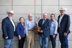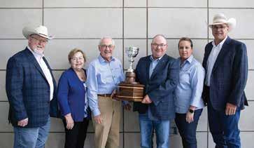 Red Hill Farms was recognized as the Beef Improvement Federation Seedstock Producer of the Year on June 12. Pictured, left, presenting the award is Robert Williams representing Drovers, sponsor of the award, and far right, Kevin Schultz, 2023-24 BIF president. Accepting the award are Susan, Gordon, Bart and Sarah Jones. Magazine