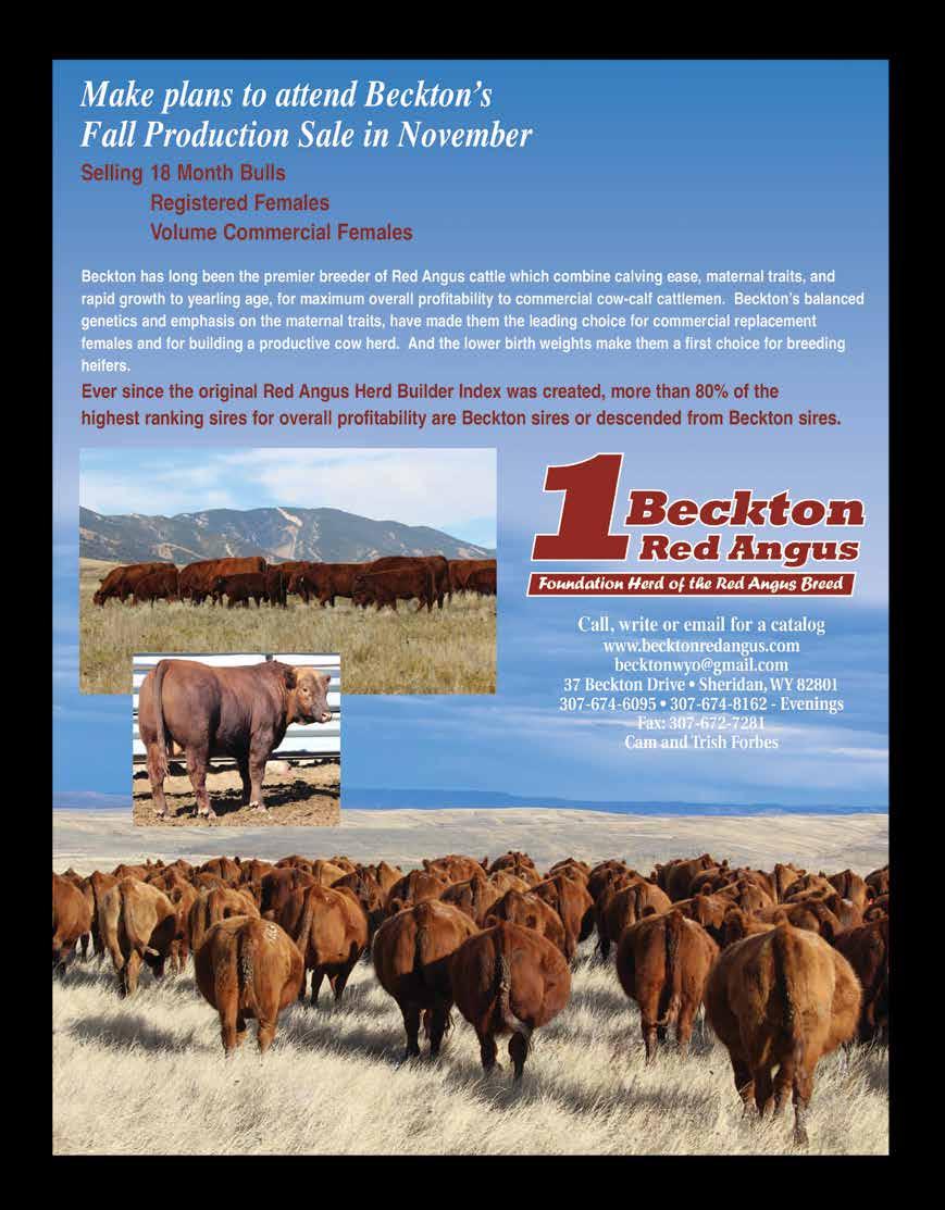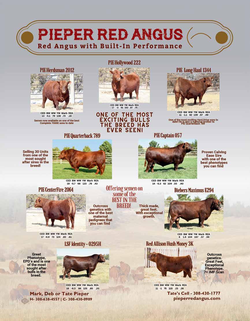 Published 10 times annually by the Red Angus Association of America at the national headquarters (18335 E. 103rd Ave., Suite 202, Commerce City, CO 80022). A non-political magazine dedicated to the promotion and improvement of breeding, feeding and marketing Red Angus cattle. Subscription rate: U.S., 1 year - $30; 2 years - $50. Canada and Mexico, 1 year - $44, 2 years - $82 (Payable in U.S. Funds Only). International Air Mail, 1 year - $55; 2 years - $100 (Payable in U.S. Funds Only). These rates are based on Third Class Bulk mailed from Jefferson City, Missouri. Add $20 per year for First Class.