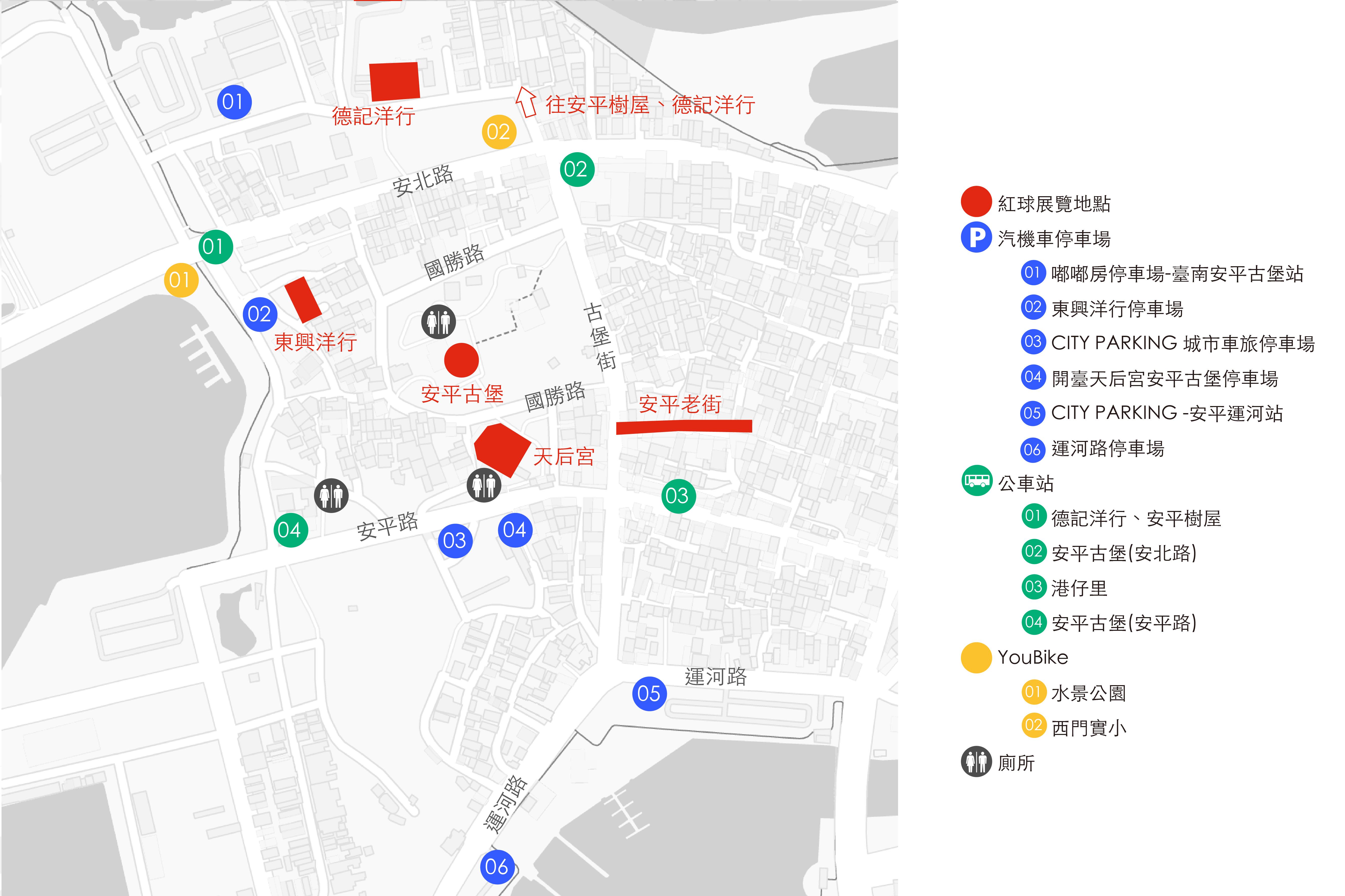 公 園 路 北 門 路 二 段 公園南路 公園北路 小東路 東豐路 01 02 04 03 05 03 01 02 紅球展覽地點 汽機車停車場 321巷藝術聚落路外停車場 市立圖書館廣場停車場 臺南北門停車場 公園路路外停車場 博客停車場-臺南轉運站場 公車站 公園北路口 臺南二中 臺南公園(北門路) 公園南路 臺南轉運站 YouBike 臺南二中 臺南文化創意產業園區 臺南公園(臺南轉運站) 廁所 01 02 03 01 02 03 04 05 01 02 03 04 05 往總爺街 臺南公園念慈亭 321巷 藝術聚落 01 02 03 04 05 指導單位: 臺南市政府 主辦單位: 臺南市政府文化局 執行單位: 美思創域有限公司 合辦 單位: 國立成功大學博物館 協辦單位: 未來智慧工場 臺南公園念慈亭