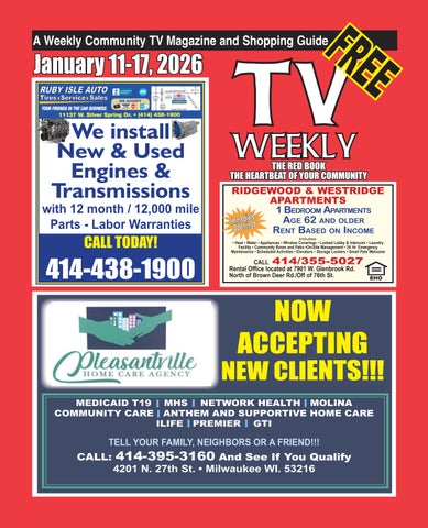 Furnished rooms for rent. $135 to $175 weekly. Utilities and Wifi included. Contact 414-739-6399 or 414-324-0693. 6/7