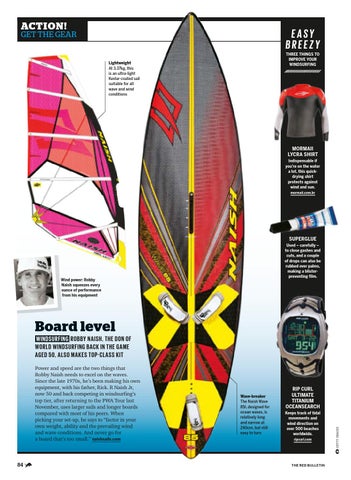 Power and speed are the two things that Robby Naish needs to excel on the waves. Since the late 1970s, he’s been making his own equipment, with his father, Rick. R Naish Jr, now 50 and back competing in windsurfing’s top tier, after returning to the PWA Tour last November, uses larger sails and longer boards compared with most of his peers. When picking your set-up, he says to “factor in your own weight, ability and the prevailing wind and wave conditions. And never go for a board that’s too small.” naishsails.com