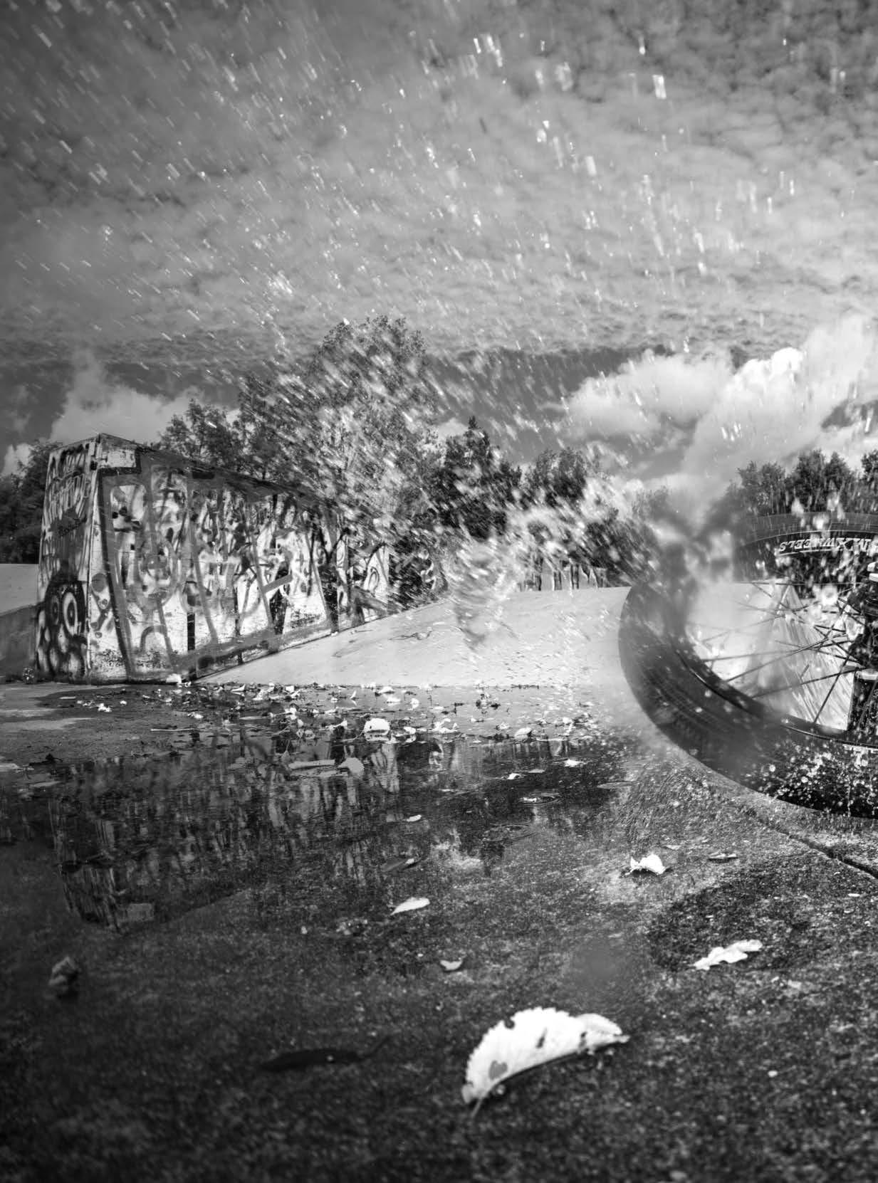 “Daniel asked me to take a photo for a flyer for a BMX event,” says Zwaal, “but we made the most of the shoot while we were there. We were blessed with a dry skatepark and some puddles, which resulted in this close tyre slide… and a wet camera.” aaronzwaal.com; redbullillume.com