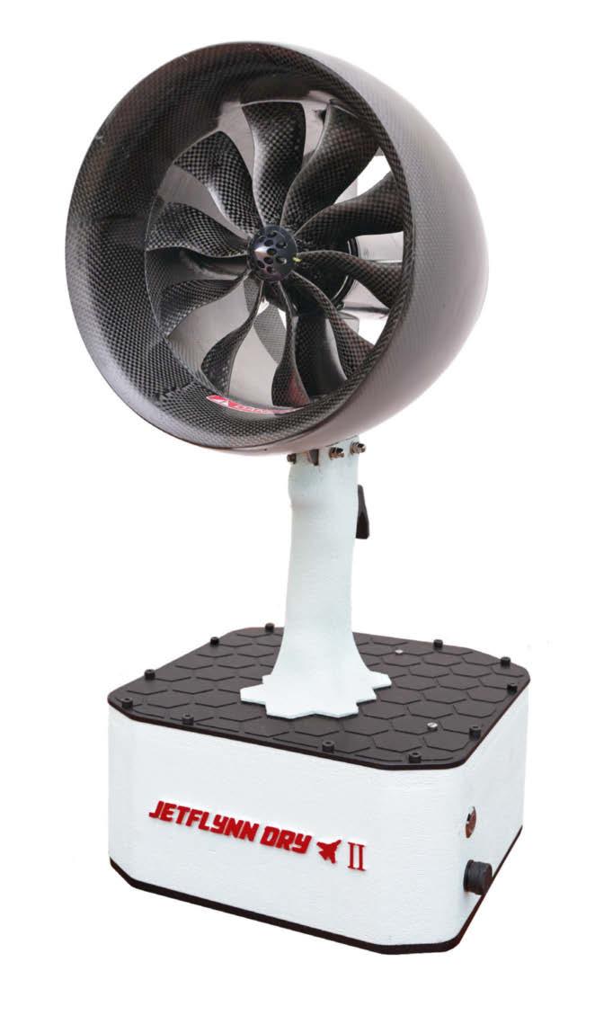Parkbank trocknen, Regentonne leeren, Auto schieben: kein Problem für Jetfynn Dry, das wohl stärkste Handgebläse der Welt.