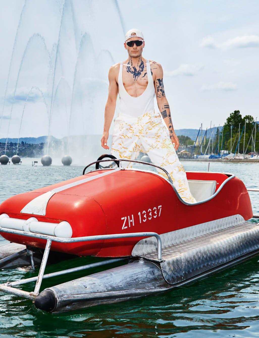 Die Spezialität des Fotografen sind seine lebendigen Porträts – und da hatte er bei dem Shooting mit dem ehemaligen Model und Designer Yannik Zamboni, der sich als „Epizentrum der Anti-Fashion“ betrachtet, viel Freude. Umso mehr, als in Zürich geshooted wurde, wohin der Schweizer Philip Müller nach 25 Jahren in Paris vor kurzem wieder zurückgezogen war. Ab Seite 75