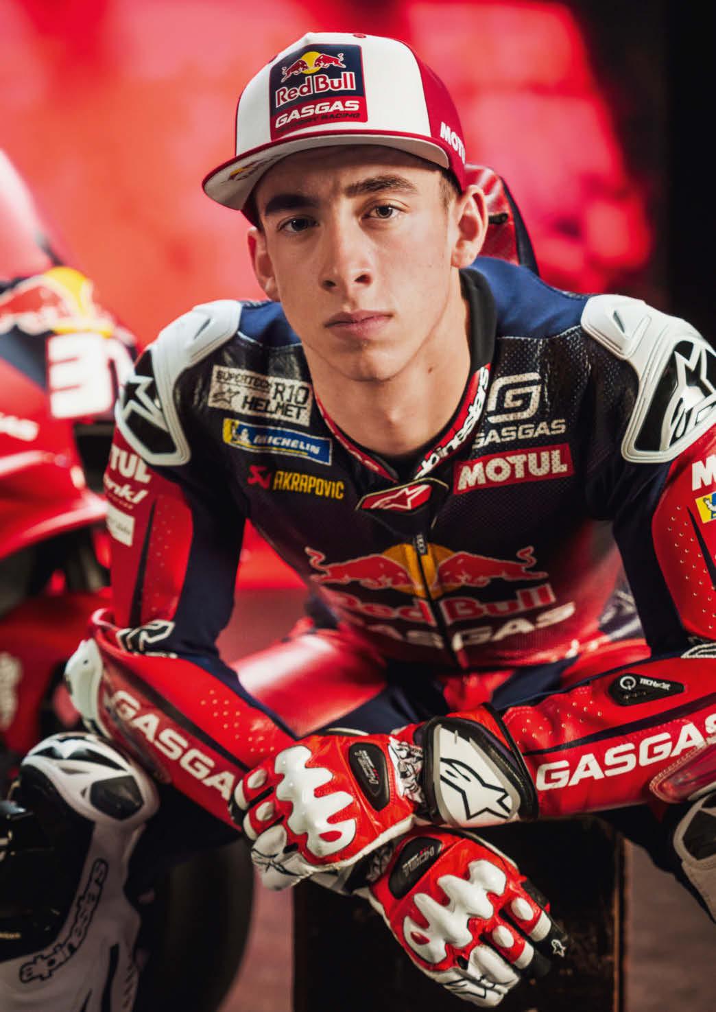 Unglaubliche Szenen: Beim GP von Doha 2021, dem erst zweiten WM-Rennen seines Lebens, war der amtierende Red Bull MotoGP Rookies Cup-Sieger Pedro Acosta nach einem Vergehen im Qualifying gezwungen, aus der Boxengasse zu starten –sieben Sekunden hinter dem Feld. Als das Rennen der Moto3-Kategorie vorbei war, lagen alle Fahrer hinter dem damals 16-jährigen Spanier. Er hatte jeden Einzelnen von ihnen überholt. Links, rechts, aus dem Windschatten, auf der Bremse, im Paket oder allein. Hier war ein Fahrer auf die Bühne geplatzt, wie es ihn nur alle paar Jahre gibt. Noch trug er Zahnspange und hatte Pickel, aber allen Experten war klar: Sobald aus dem Nachwuchspiloten ein Mann geworden sein würde, der in der MotoGP starten darf, wird auch dort ein neuer Wind wehen. Der „Hai aus Mazarrón“, so sein Spitzname, würde mit seinem spektakulären Fahrstil, seiner frechen Herangehensweise und jugendlichen Unbekümmertheit zum Publikumsliebling werden. Genau dieses Jahr ist 2024 gekommen. Im Privatteam von Red Bull GASGAS Tech3 schlägt Pedro nicht nur die arrivierten Kollegen im KTM-Werksteam mit bemerkenswerter Regelmäßigkeit, er legte sich auch von Anfang an frech mit den anderen Stars der Szene an. Darin erinnert er an einen gewissen Max Verstappen, der allen Gegnern von Anfang an zu verstehen gab: Freunde, ich kann das. Und ich werde gewinnen. Sehr bald.