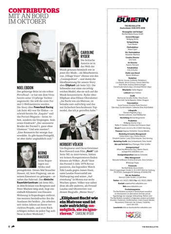 Contributors Mit an Bord im Oktober THE RED BULLETIN Deutschland, ISSN 2079-4258 Herausgeber und Verleger Red Bull Media House GmbH General Manager Wolfgang Winter Verlagsleitung Franz Renkin