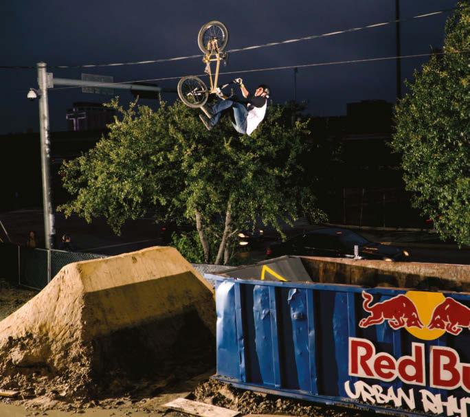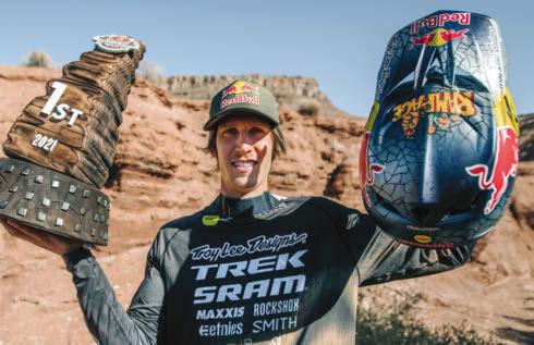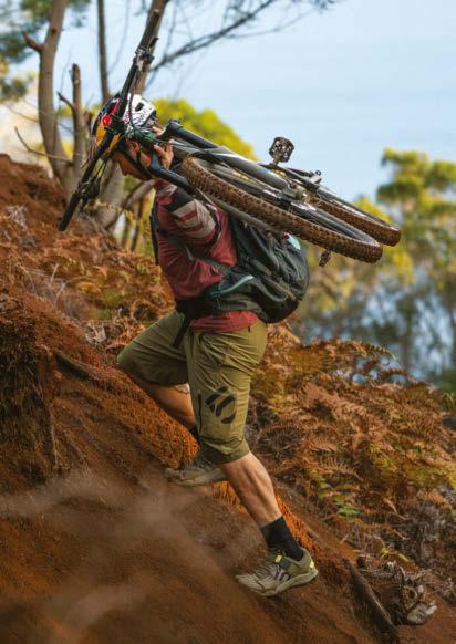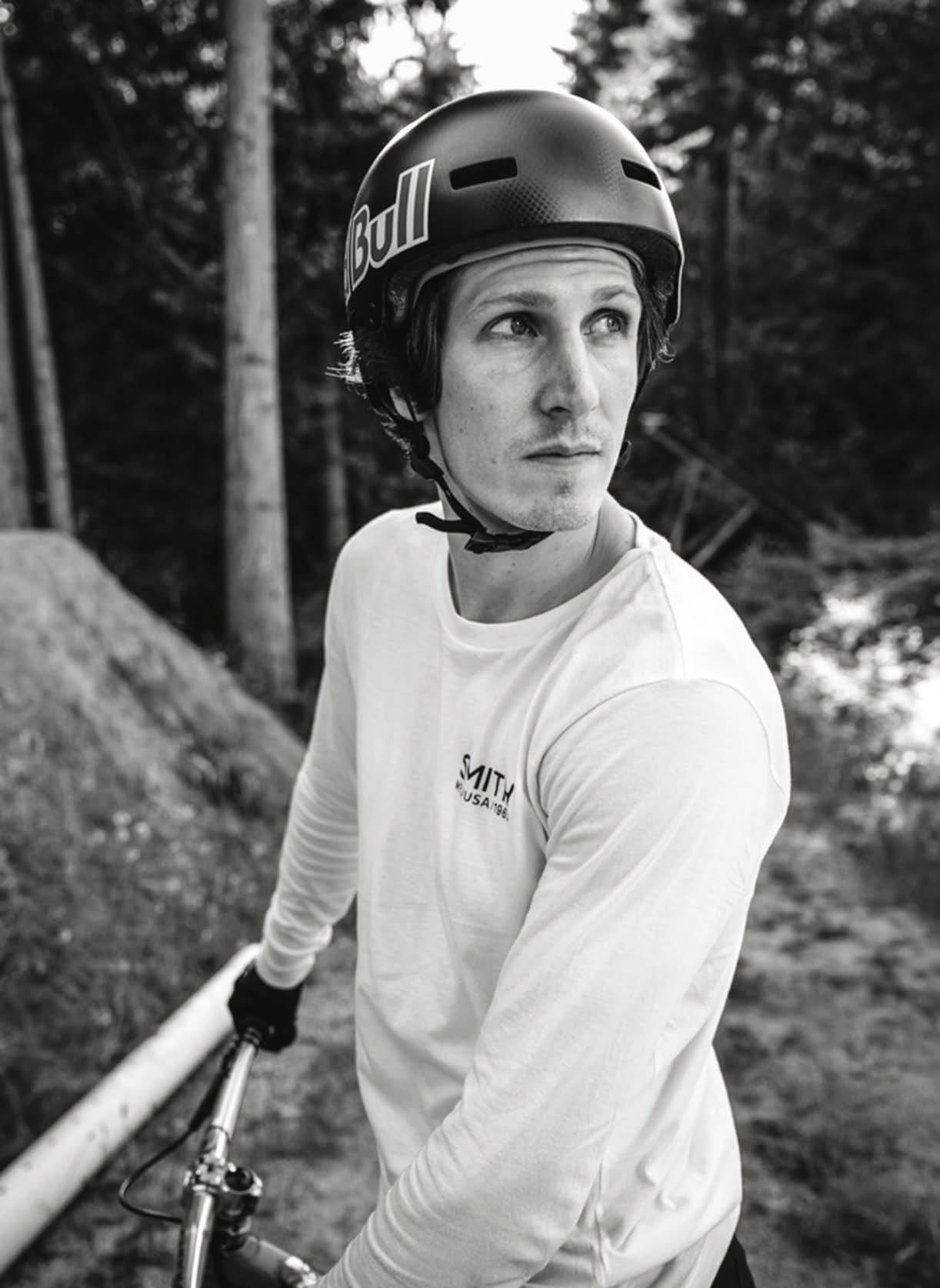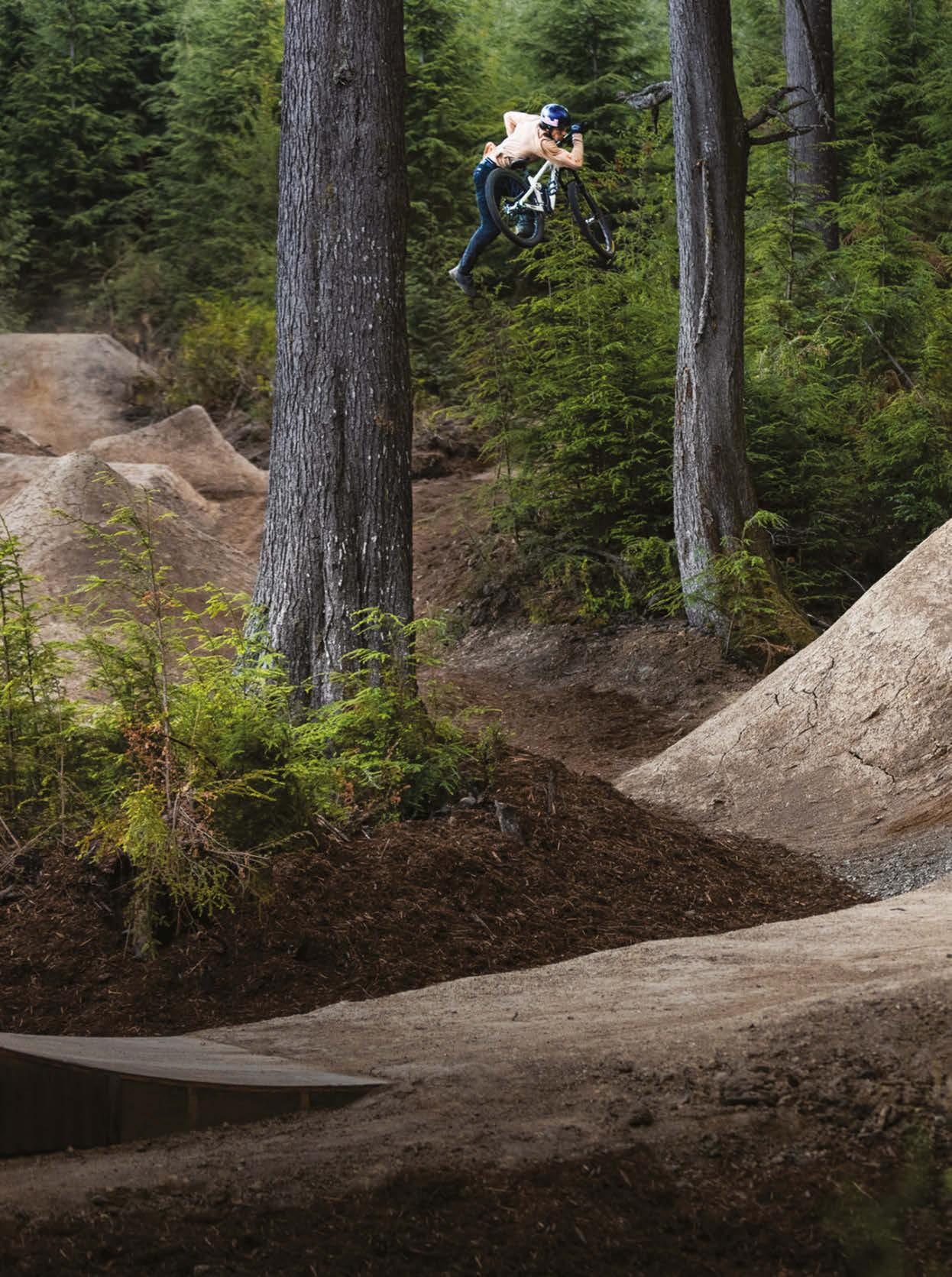 Kevin Arnold snaps pictures of Brandon Semenuk in an outbuilding on the rider’s property that’s decorated with dozens of bikes ridden at Rampage and other events. TOBY COWLEY (COVER BRANDON SEMENUK), LAUREL GOLIO (COVER VICTOR MONTALVO), ATHENA TORRI, ELENA MUDDFREE AS A BIRD Brandon Semenuk displays his signature style and seemingly effortless grace in the backyard of his British Columbia home.