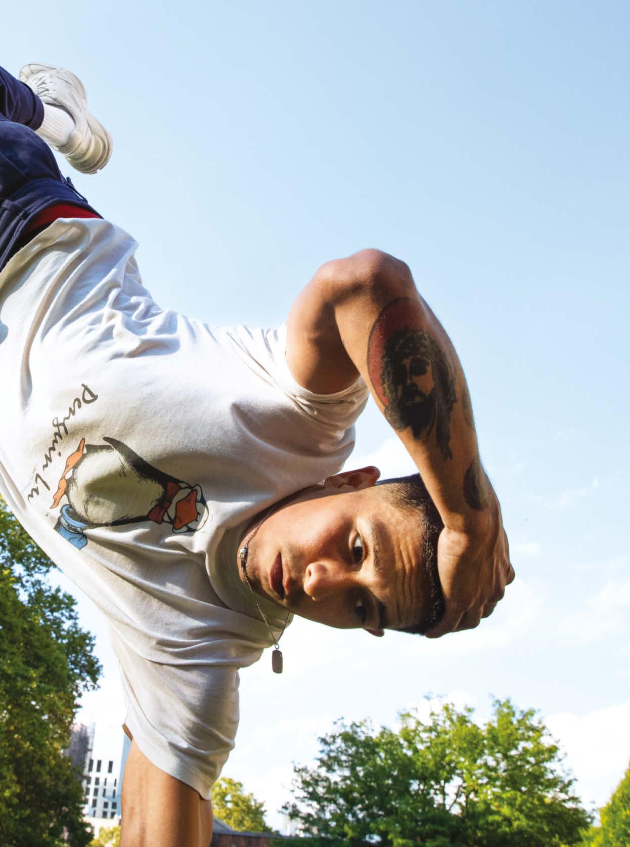 The Brooklyn-based photographer shot champion B-Boy Victor Montalvo in a studio and on the streets of Chinatown in lower Manhattan. “Victor brought a really lovely energy to set,” she says. “He was down for anything and was super collaborative—really a dream to work with.” Golio has shot for The New York Times, The Atlantic and brands like Nike, H+M and Puma. Page 52