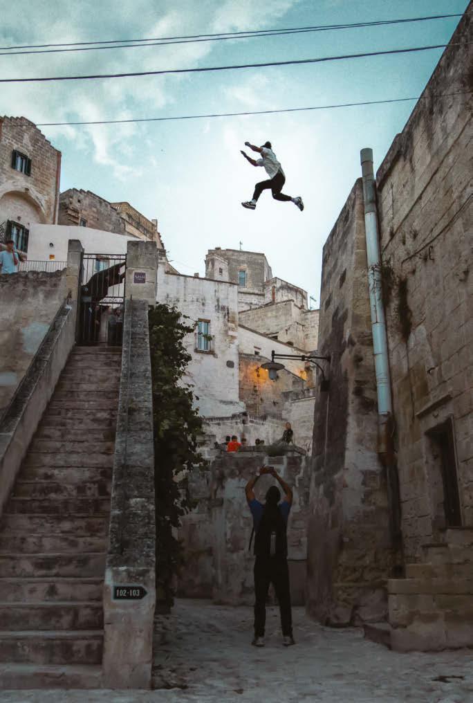 Matera, a town in southern Italy, is known as “the city of caves” because of the prehistoric dwellings carved out of its cliffs. Milan-based photographer Anna Rossini was there for Red Bull Art of Motion when she captured this shot of parkour legend Joe Scandrett, which won her a semifinal place in Red Bull Illume. “Before the start of the competition, all the athletes were out finding new challenges,” she says.