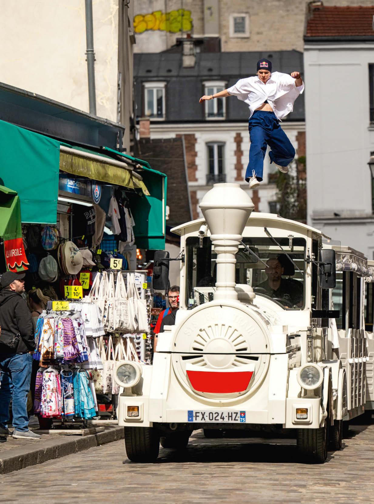 Mit ihren eins vierundfünfzig mag sie nicht die Grösste sein, als Freerunnerin reicht Lilou Ruel, 21, aber kaum jemand das Wasser: Mit achtzehn holte sie sich den Weltmeistertitel, ein Jahr später übersprang sie als erste Frau den Manpower Gap in Évry, ein legendärer 4,5MeterJump. Manchmal geht Lilou aber auch einfach nur über den Dächern «spazieren» wie hier in Montmartre für ihr «Lilou Jump Around»Projekt.