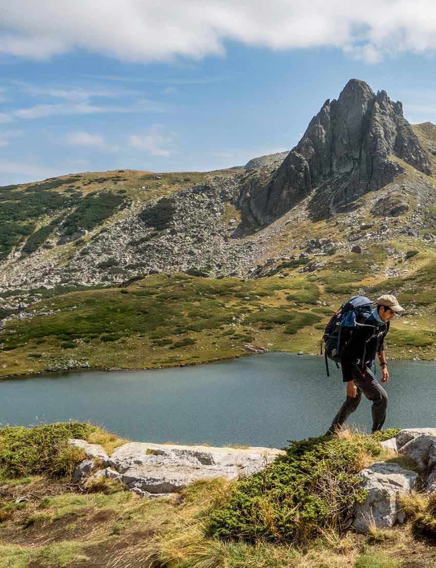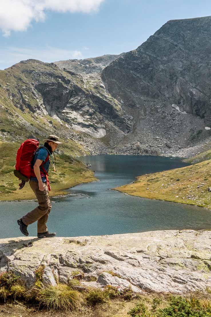 Gletschern auf der Spur Wer zum Ezeren vrah auf 2.559 Metern will, passiert etwa den Bliznaka (Zwillingssee), den größten der sieben RilaSeen. Im Hintergrund erhebt sich schroff der Haramijata-Gipfel.