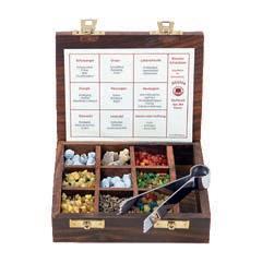 Die Kiste mit neun erlesenen Räucherwerken für das ganze Jahr wird in der oberbayerischen Manufaktur von Eva Kilwing zusammengestellt. € 39,–