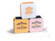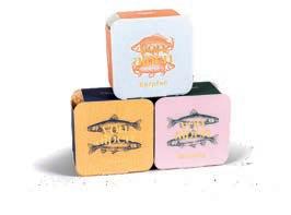 Drei Dosen mit eingelegten Filetstücken vom österreichischen Saibling, Karpfen und von der Forelle.