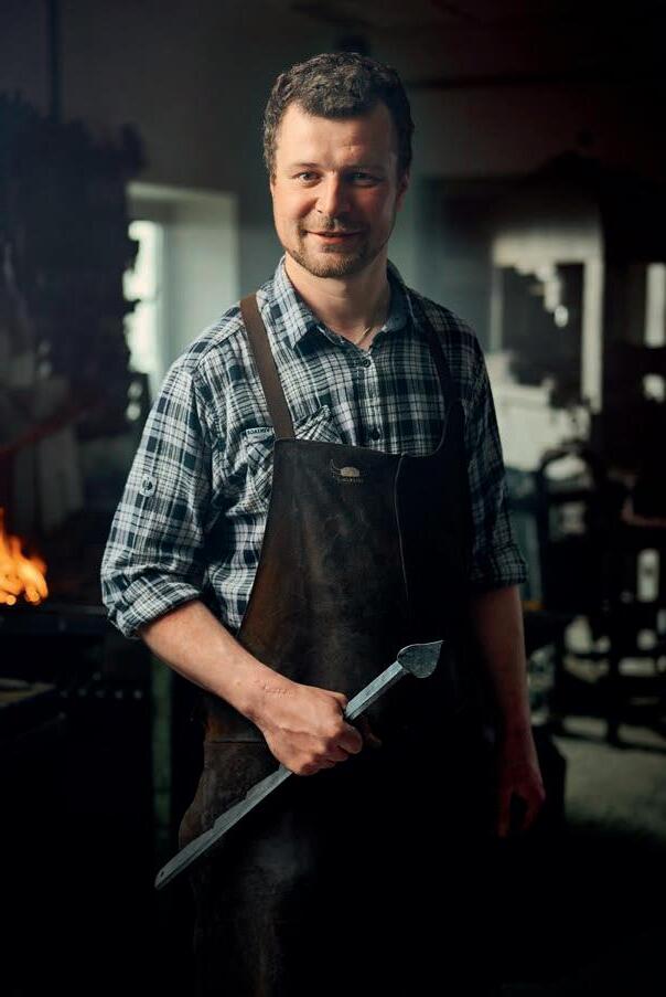 Passend zu seinen Pfannen schmiedet Stefan Kindermann von Hand diesen Pfannenwender. Ein Küchenutensil fürs Leben.