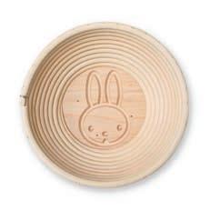 Das Gärkörbchen mit seinem Hasenmotiv-Boden macht das selbst gebackene Brot zum Blickfang. Es fasst 0,75 Kilo Brotteig. Maße: ∅ 21 × 8,5 cm, € 37,–
