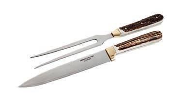 Familienbetrieb Schwarz für das Teilen des Festtagsbr atens. Rostfreier Stahl mit Hirschhorngriffen. Länge: 29 cm, € 149,–