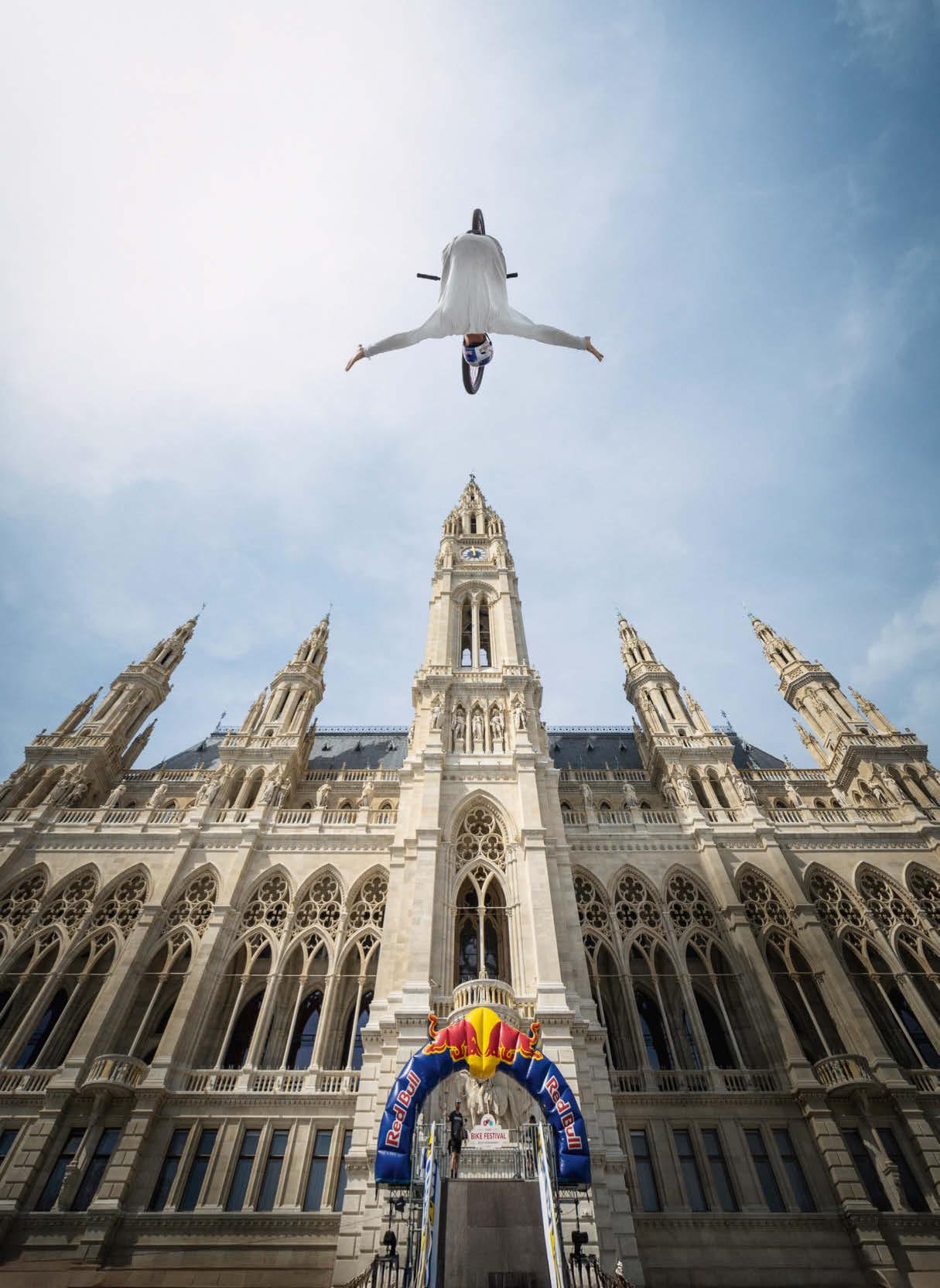 Wenn sich die Crème der FreestyleSzene am Wiener Rathausplatz einfindet, dann ist nicht nur das Argus Bike Festival in vollem Gange, sondern auch das Dirt Battle: 16 Biker überbieten sich mit irren Tricks und Jumps. Hier im Bild: der viermalige Best-TrickSieger Dawid Godziek. Womit der Pole letztes Jahr gewann? Mit einem „cashroll tailwhip to double barspin“. Alles klar? Keine Sorge: Diesen Trick kann – und versteht – ohnehin nur er. Dirt Battle: 12. und 13. April, dirtbattle.com