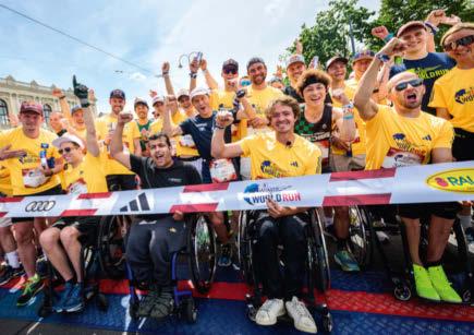 Trainings- oder Testlauf planen. So oder so: Die Startgelder fließen zu 100 Prozent in die Rückenmarksforschung, um eine Heilung für Querschnittslähmung zu finden. Angesichts dieses wohltätigen Zwecks gibt es kaum einen Grund, nicht dabei zu sein. Selbst wer es beim besten Willen nicht schaf t, bei einem der sieben Flagship Runs in sieben Ländern zu sein – die Startzeit ist überall auf der Welt gleich, ob tagsüber oder in der Nacht –, kann mittels eigener App für sich allein oder in einer Gruppe anderswo mitlaufen.