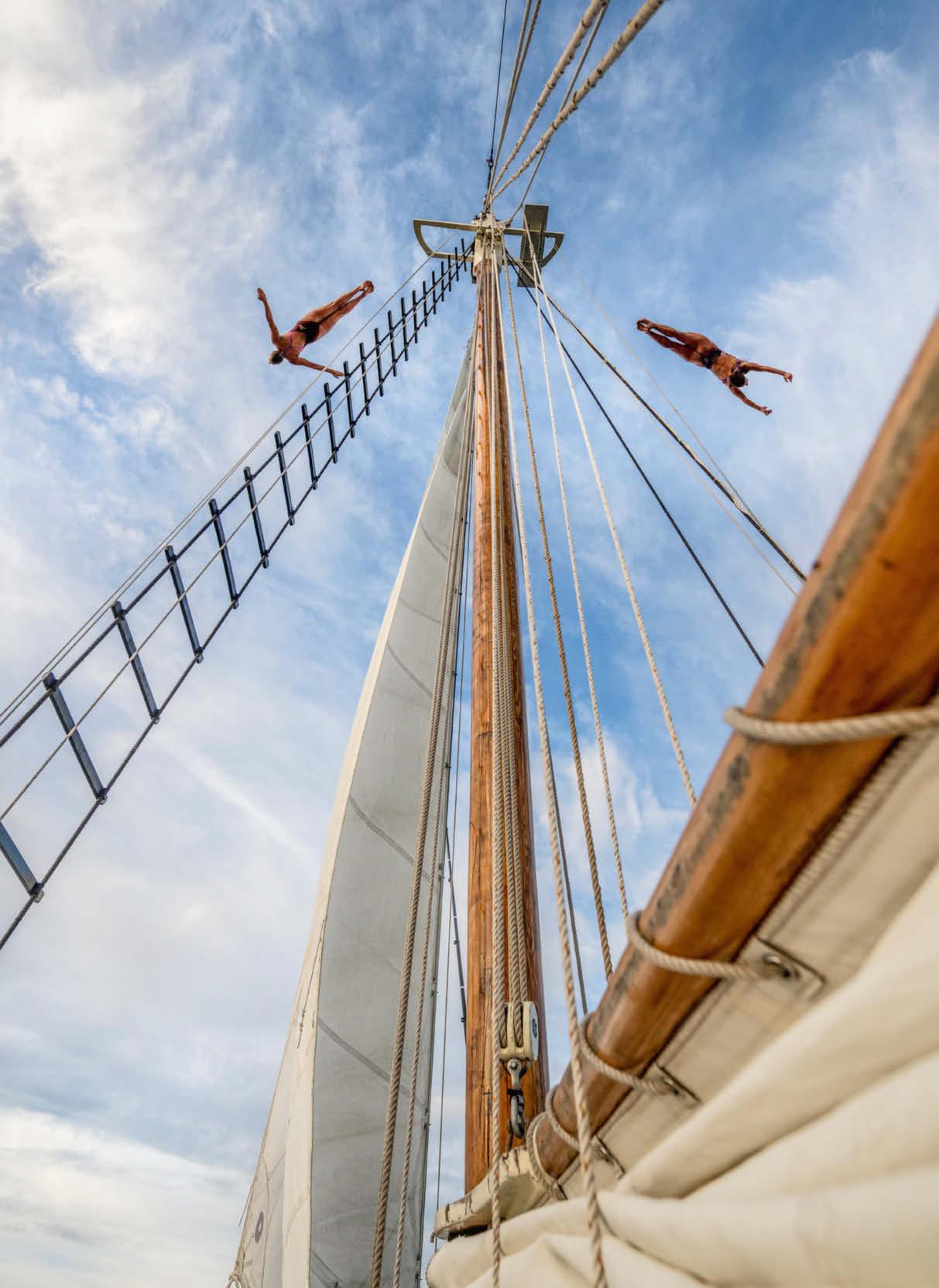 Pour célébrer sa centième étape, les Red Bull Cliff Diving World Series ont offert un spectacle unique : les athlètes ont sauté depuis le mât d’un voilier. C’est ainsi que, dans le port de Boston, ont été prises ces images spectaculaires de l’Australienne Rhiannan Iffland (à g.), et de l’Américaine Kaylea Arnett. Leurs plongeons synchronisés depuis une plateforme de 21 m semblent se refléter dans l’air. Après ce show exceptionnel, Iffland a remporté la finale de la saison, et ainsi le titre de la série 2025.
