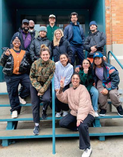 Entouré de l’équipe qui a géré la production de sa couverture (édition US), le rider Zeb Powell (au premier plan, tout à droite) célèbre la fin d’une séance photo très énergique autour et dans les locaux de Red Bull à New York.