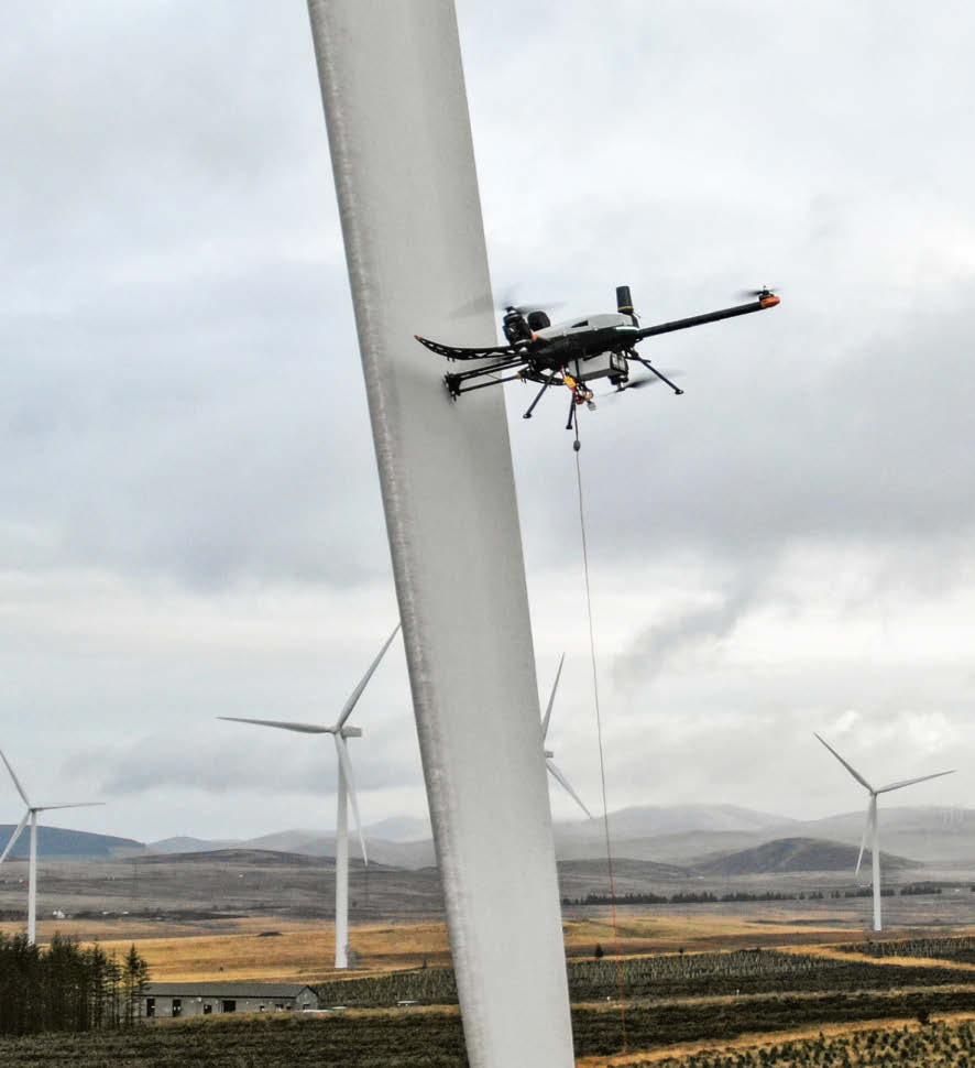 L’équipe technique a mis au point un drone capable, grâce à six rotors orientables à 360 °, de maintenir une position constante en plein vol, même en cas de vent, et ce à quelques centimètres seulement de la surface à traiter.