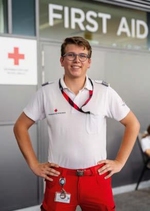 ‘Als EHBO’er is het mijn taak om tijdens het raceweekend snel eerste medische zorg aan toeschouwers te kunnen bieden, zowel op het terrein als daarbuiten, op de camping. Met eventuele ongevallen op het circuit heb ik niets te maken, daar is een apart team voor. Onze shift begint om zeven uur ’s ochtends en duurt tot zeven uur ’s avonds. De meeste hulpvragen hebben te maken met de hitte, wespensteken, soms snijwonden en de gevolgen van alcoholgebruik. Ik ben niet alleen fan van het werk van het Rode Kruis, maar houd ook van evenementen in het algemeen en de Formule 1 in het bijzonder. Deze baan combineert die drie passies! Natuurlijk hoop ik dat dit weekend alles goed gaat – op de baan, maar ook ten aanzien van de toeschouwers.’