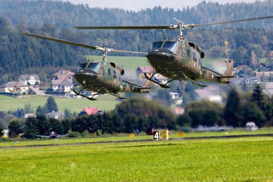 Das kann er: die österreichische und die steirische Fahne zum Red Bull Ring bringen, zum Beispiel. Beim Österreichischen Bundesheer ist der vielseitige Agusta Bell 212 mit seinem Zweiblattrotor für Transportaufgaben mit schweren Lasten im Einsatz. Auch für Rettungsfüge wird er eingesetzt.