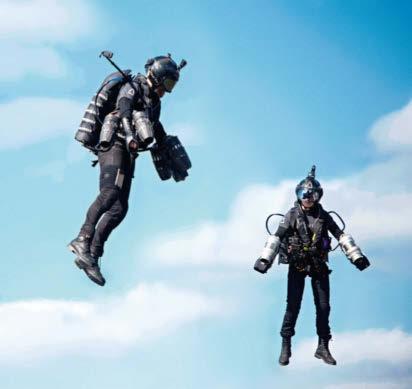 Das kann er: Dank seinen insgesamt fünf Mini-Turbinen an Armen und Rücken mit insgesamt 1050 PS lässt dieser Anzug seine Piloten abheben wie Iron Man.