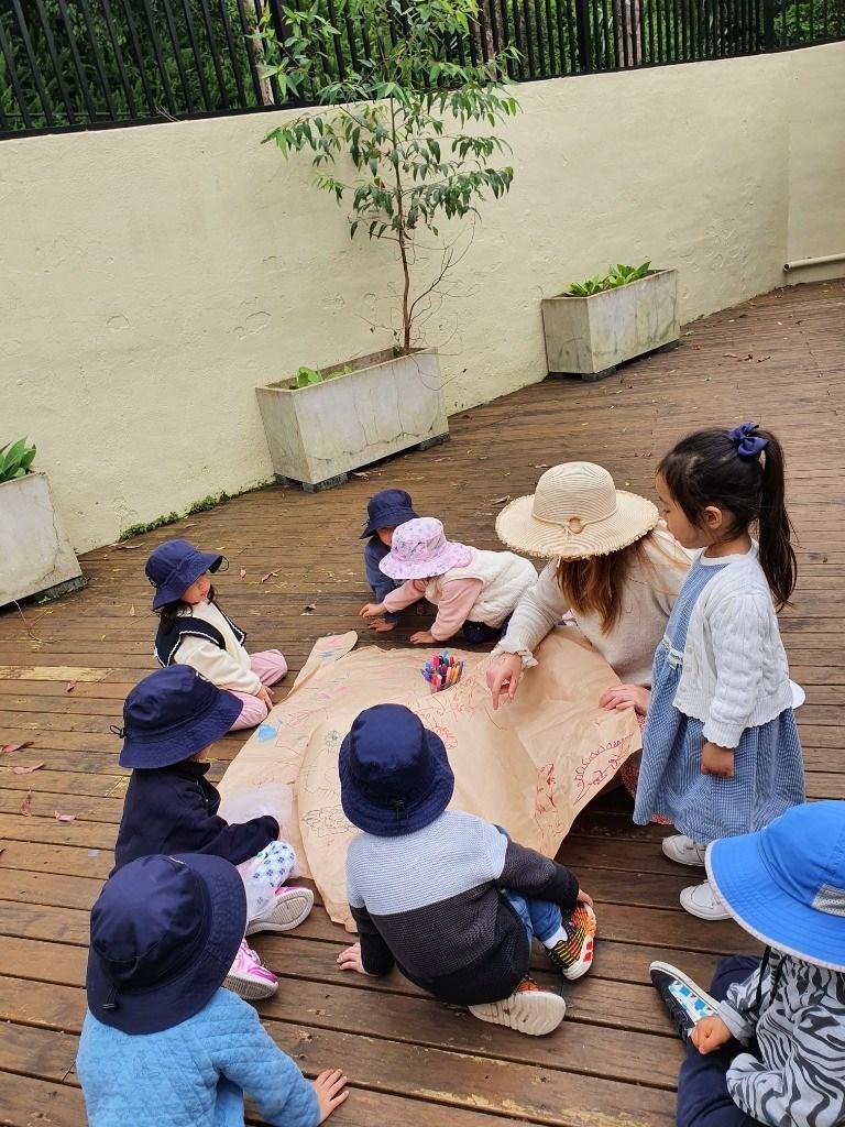 Welcome to Term 4! 3E have recently started their journey of exploring literacy through play where they have been able to explore different letters and their corresponding sounds found in their names, objects within the room and other important aspects relating to their learning environments. During Week 1, the children were invited to practise writing their names using different drawing utensils and materials, practise signing into the room by writing their name, using sign language to sing the alphabet, and actively use their imagination to create their own story with matching pictures! This allowed the children to engage in meaningful group discussions and small group activities where they could read high corner, engage with play and begin to establish further connections between people, places, and things.