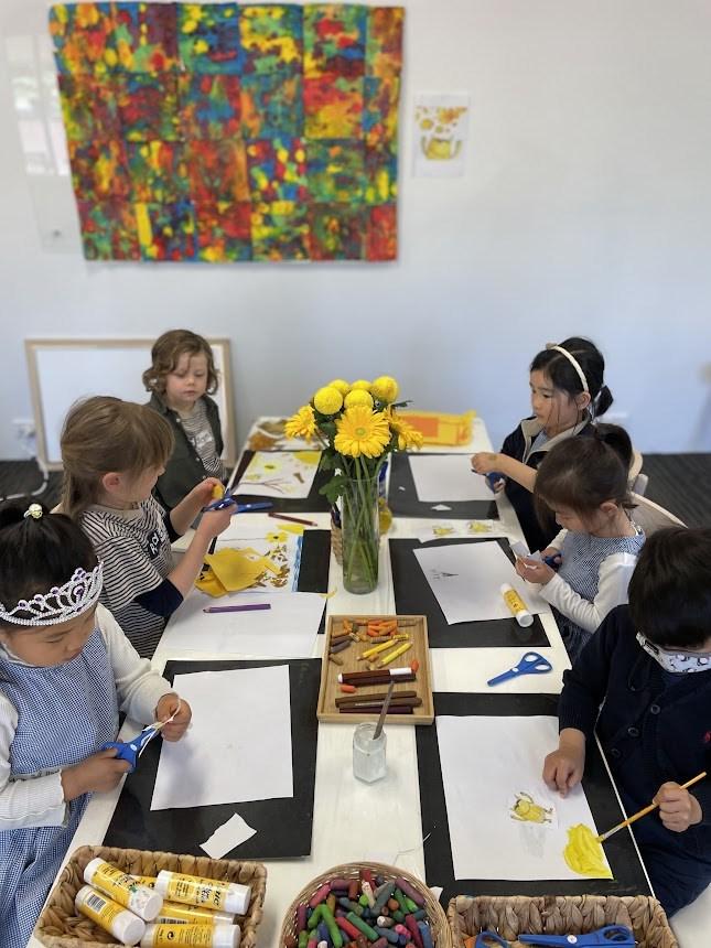 One of the children’s favourite stories was called The Jar of Happiness by Ailsa Burrows. The little girl in the story filled her jar with the things that made her happy and carried it everywhere she went. The children shared what they would put into their jar of happiness including sunshine, seashells, flowers, glitter, jewellery, chocolate and lollies. Throughout the week the children were invited to fill their own jars, scooping sparkly gemstones and sequins into them. At our learning tables, the children loved exploring the variety of yellow 'happy experiences'. They manipulated kinetic sand with sunflowers and gemstones, rolled and moulded yellow play dough to make flowers, and shaped kinetic sand. At our art table, the children took inspiration from our yellow illustrations in The Colour Monster book, using markers, pencils, paints and cellophane.