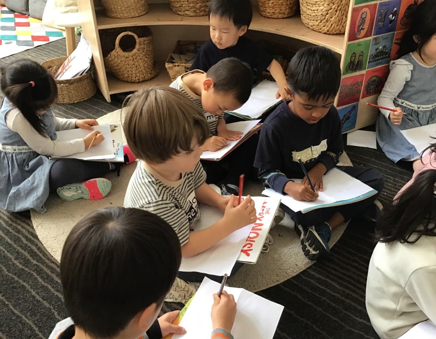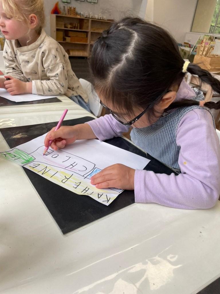 The children in 3E have continued to explore literacy through play and small group activities where they have been able to listen to different stories, share their differing ideas and thoughts about what could happen before, during and after; as well as drawing various illustrations to showcase their imagination and creativity. During Week 2, the children were invited to practise writing their name upon arrival, using the whiteboard and other materials to write their name with, and using other loose part materials to find different letters to match the corresponding objects and pictures. The children seemed to draw meaning and establish further connections from finding different letters around the room and identifying various things that start with the letter. For example, we had some lovely ideas including, “A is for apple” “P is for pig” “M is for monkey” and “C is for cat” This allowed the children to enhance their pre literacy and comprehension skills and broaden their vocabulary. Furthermore, some of the learning opportunities the children have enjoyed the most include: