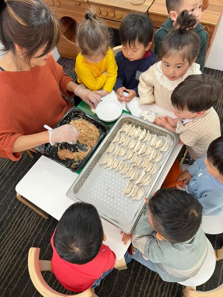 It was a harsh winter, and many people were suffering from the effects of the cold. Zhongjing used the dough to wrap the mutton, herbs, and chillies, keeping them warm by steaming the mixture to hold it all together. People could withstand the cold because these steaming, pillow like delicacies and the herbs that Zhongjing added enhanced blood circulation and prevented frostbite. Many different cultures invented their dumplings, and many of those dumplings look pretty different from what Zhongjing first created. Understanding this unique history helps us better comprehend how food has served as both a necessity and a form of therapy for the body, mind, and soul throughout human history. Inspired by this fascinating story, this week, 2R was invited to make chicken dumplings that involved everyone in our room in the process, and the flavours inside these dumplings turned out to be as rich as the history behind them.