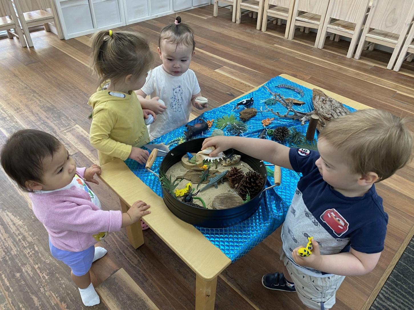 Each day we provide the children with sensory opportunities, the vast array of textures we use supports their sensory capabilities and extends their knowledge and understanding of the world around them. The small world play allows the children to use their imaginations and create their own version of the habitats.