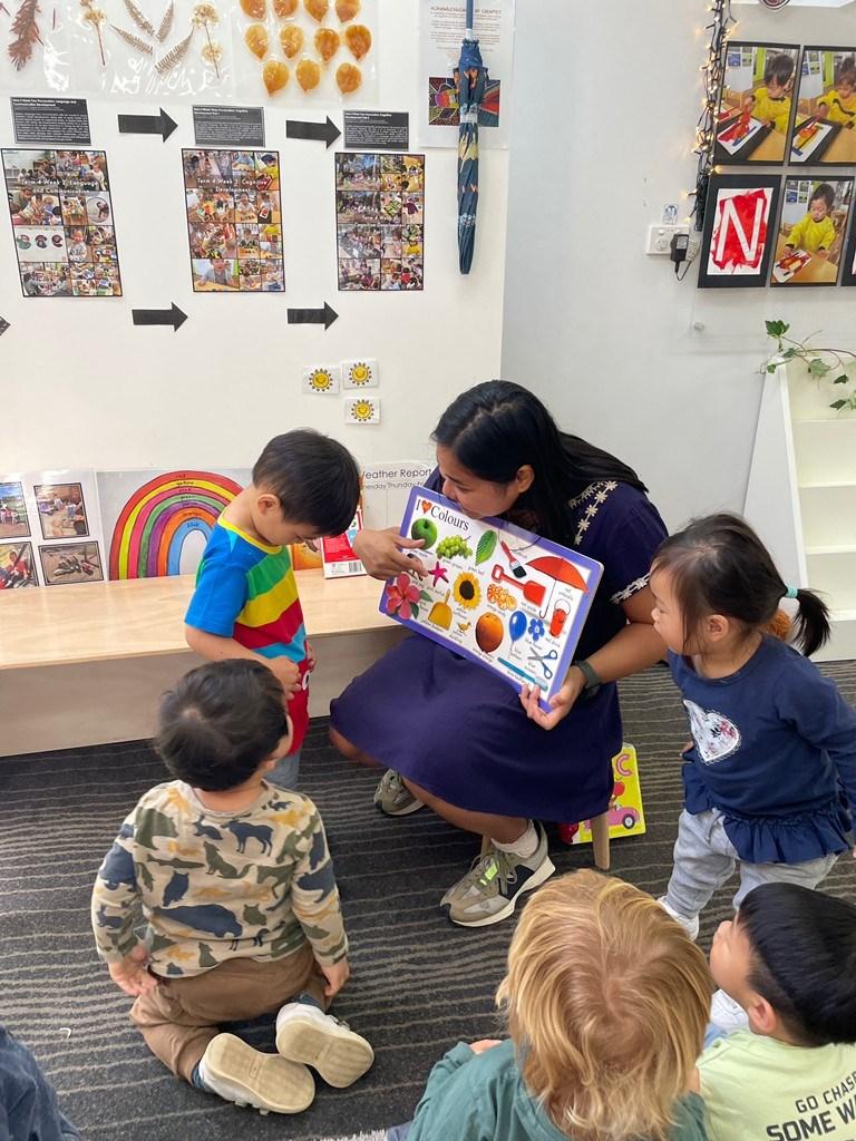 During Week 7, the children started to explore different picture books where they could identify who the author and illustrator is as well as observing and analysing what a front cover of a book looks like and contains. The children were able to design and create their own front covers of picture books using their imagination and creativity. This allowed them to work independently and collaboratively in small groups while sharing with each other their ideas and thoughts. The children were provided with lots of opportunities to create various characters from different picture books while using a wide range of materials and resources including playdough, paddle pop sticks and more. This allowed the children to reflect upon different stories and use their interpretations and ideas to make meaning. The children were also provided with the opportunity to act out the story, “We’re going on a bear hunt” where they were able to move around the room trying to walk through grass, mud, snowstorms and through the cave to stumble across the bear. Throughout the week the children continued to engage with play learning where they could recognise and identify different letters and sounds around the room, engage in letter Bingo, sing different songs using Sign Language and much more!