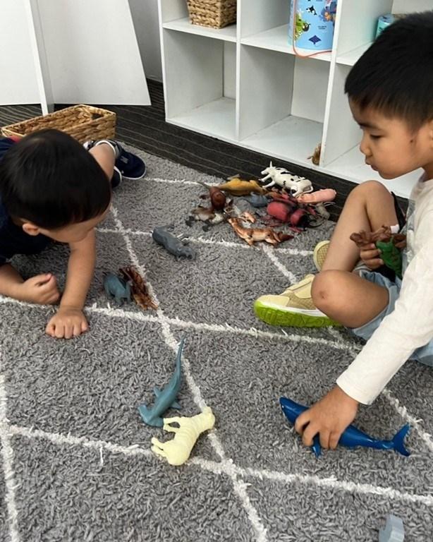 To enhance the children's understanding of Indian habitats and the living things around them invited the children to explore Indian wildlife by engaging in small wordplay and sensory experiences. These play based learning experiences promote 2R children's sensory development and social skills as they initiated conversations about identifying Indian animals or sought connections with a lovely smile. Different sensory materials create great opportunities to scaffold children's oral description language when they touch and feel the difference between each object.