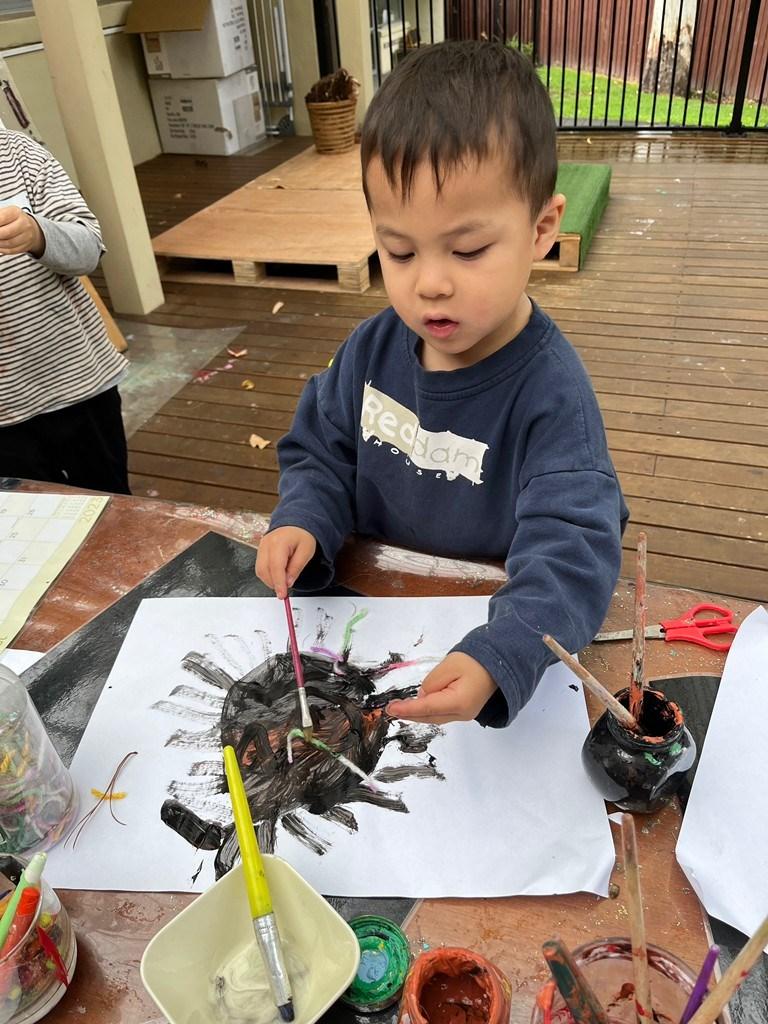 During the past couple of weeks, the children showed interest in painting. Miss Shandie invited them to create their unique art and craft using marbles and boxes. The children enjoyed dipping their marbles in the paints and used the spoon to pick up the marbles and put them onto the paper. The children started shaking and moving their boxes to create a unique art then they start singing the song " shaky, shaky, stop" They independently chose the colour of the paint they would like to explore and shared their thoughts verbally with each other. The children were very happy and felt proud of their achievements.