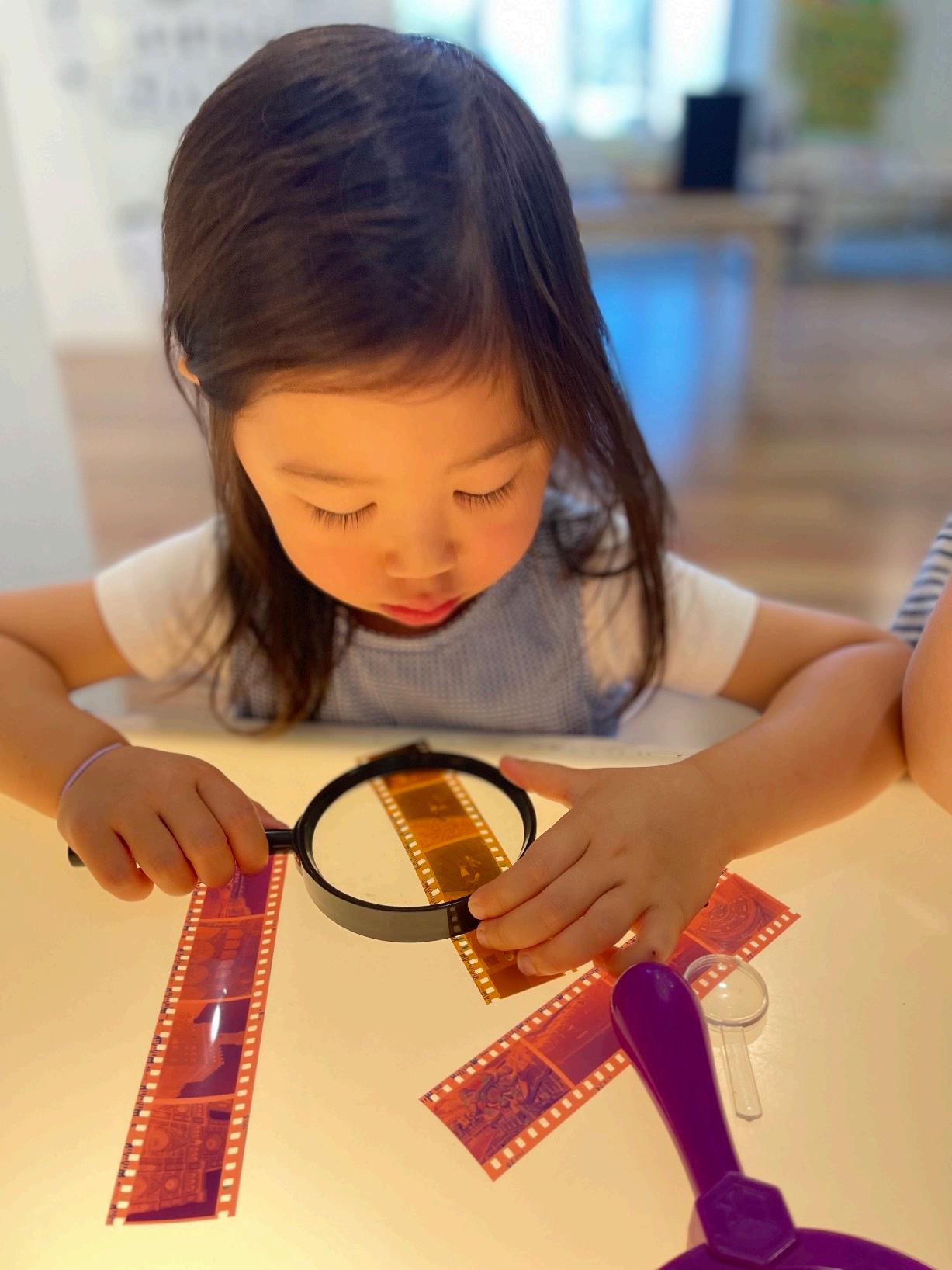 We first decided to inspect the negatives by placing them on the light table. We then used a magnifying glass to have a closer look at the negatives. Wishing to have a clearer view of the negatives, it was decided upon to place the negatives on a window that was exposed to lots of natural daylight. Using the natural sunlight, the images on the negatives became clearer and with the use of the magnifying glass again, the children were able to view the negative images through a different means.