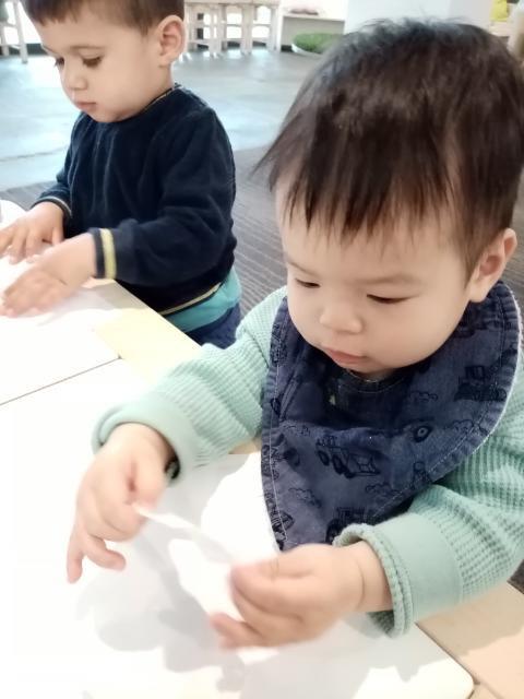 We then used our experience though art. Our Babies made a soil collage that was a collaborative work of soil. Lots of chatting and wanting to help others was part of the excitement of creating art. It is really lovely to see how Babies interact with each other during a group activity.