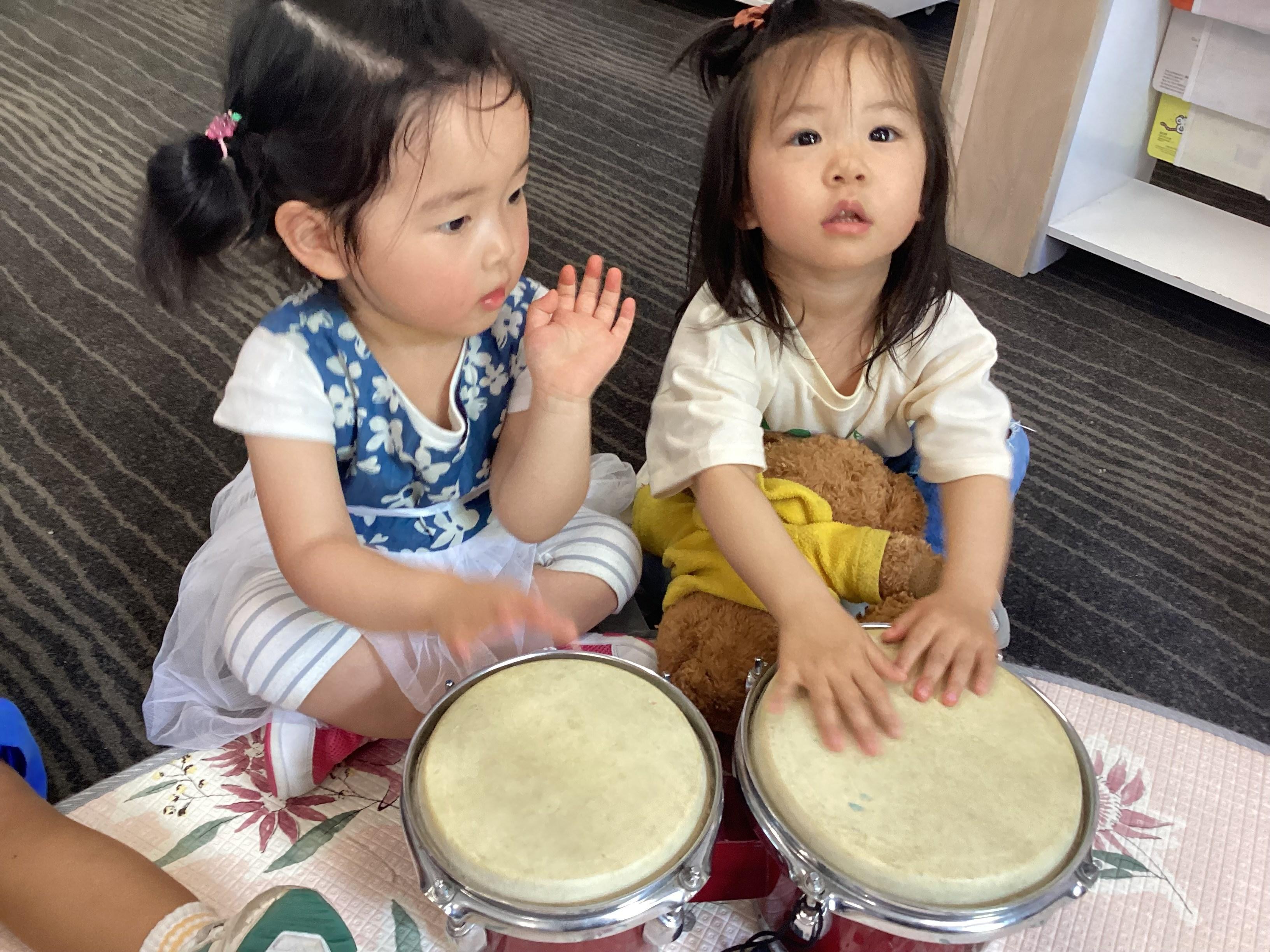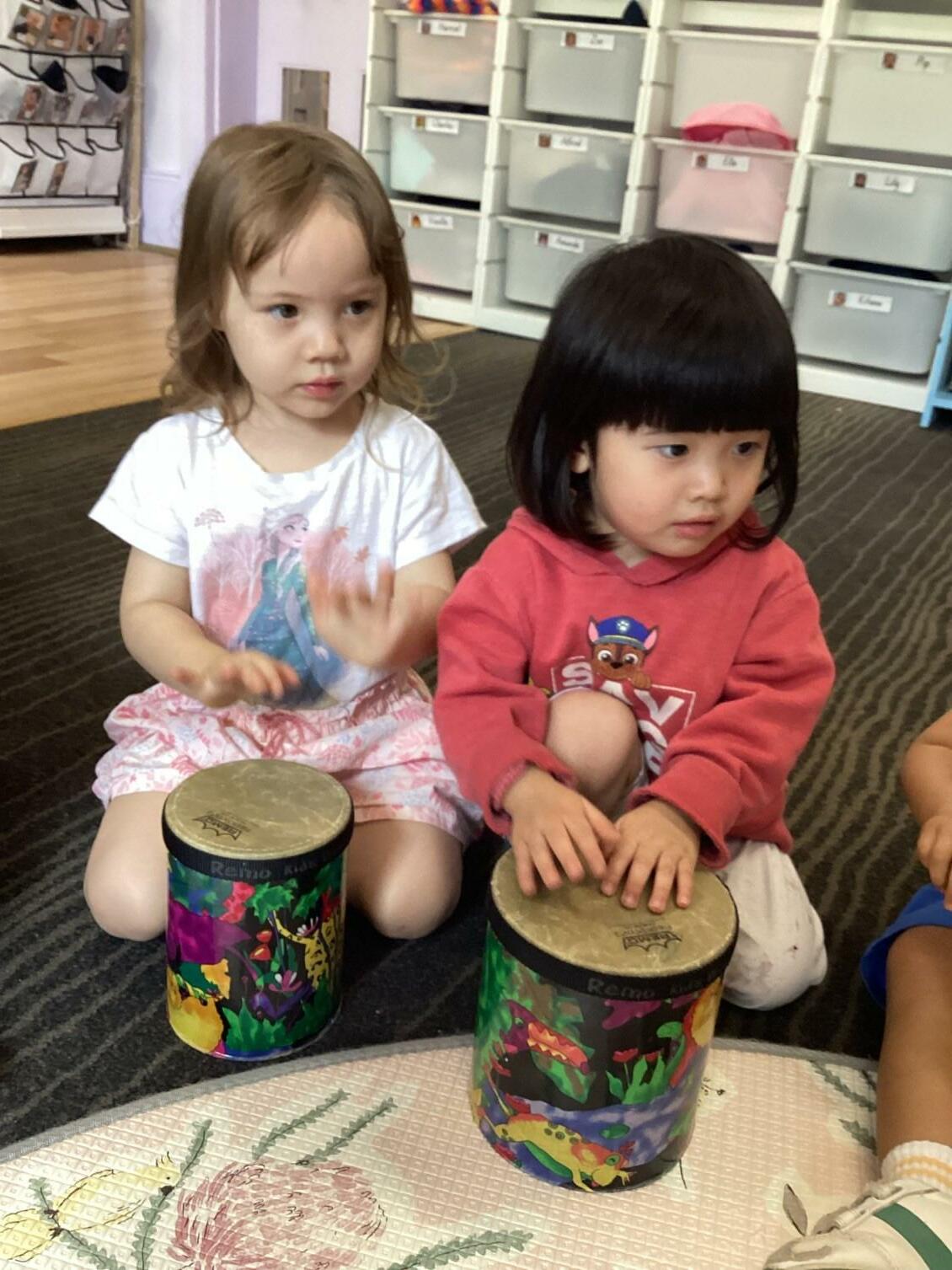 To end the lesson, Stage 2 tried their best to form a marching band, while The Fledglings enjoyed some free play on the instruments.
