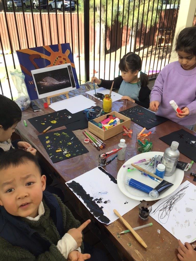 Continuing our focus on Aboriginal astronomy and storytelling, we explored the theme of 'Storyteller.' We engaged the children by sharing pictures and stories about Indigenous astronomical knowledge. Together, with the help of Callum, they created their constellations using a projector. This hands-on project allowed them to make their own stars, using laminated sheets and markers to design unique night sky scenes. We proudly displayed their individual creations against the classroom wall, witnessing their creativity unfold.