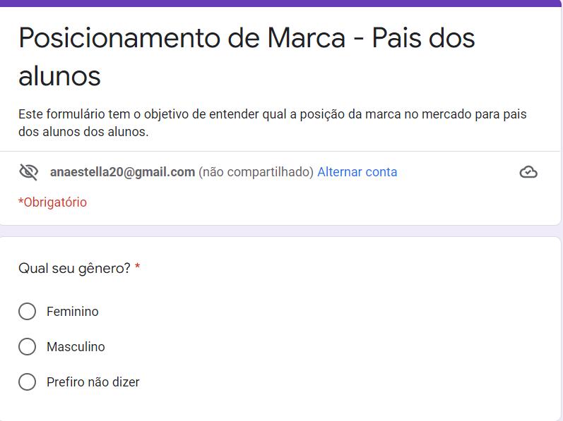 Para a aplicação da pesquisa, será realizado um levantamento com dados internos para o dos pais dos alunos que utilizam a plataforma para ser disparado via e-mail a pesquisa de percepção de marca.