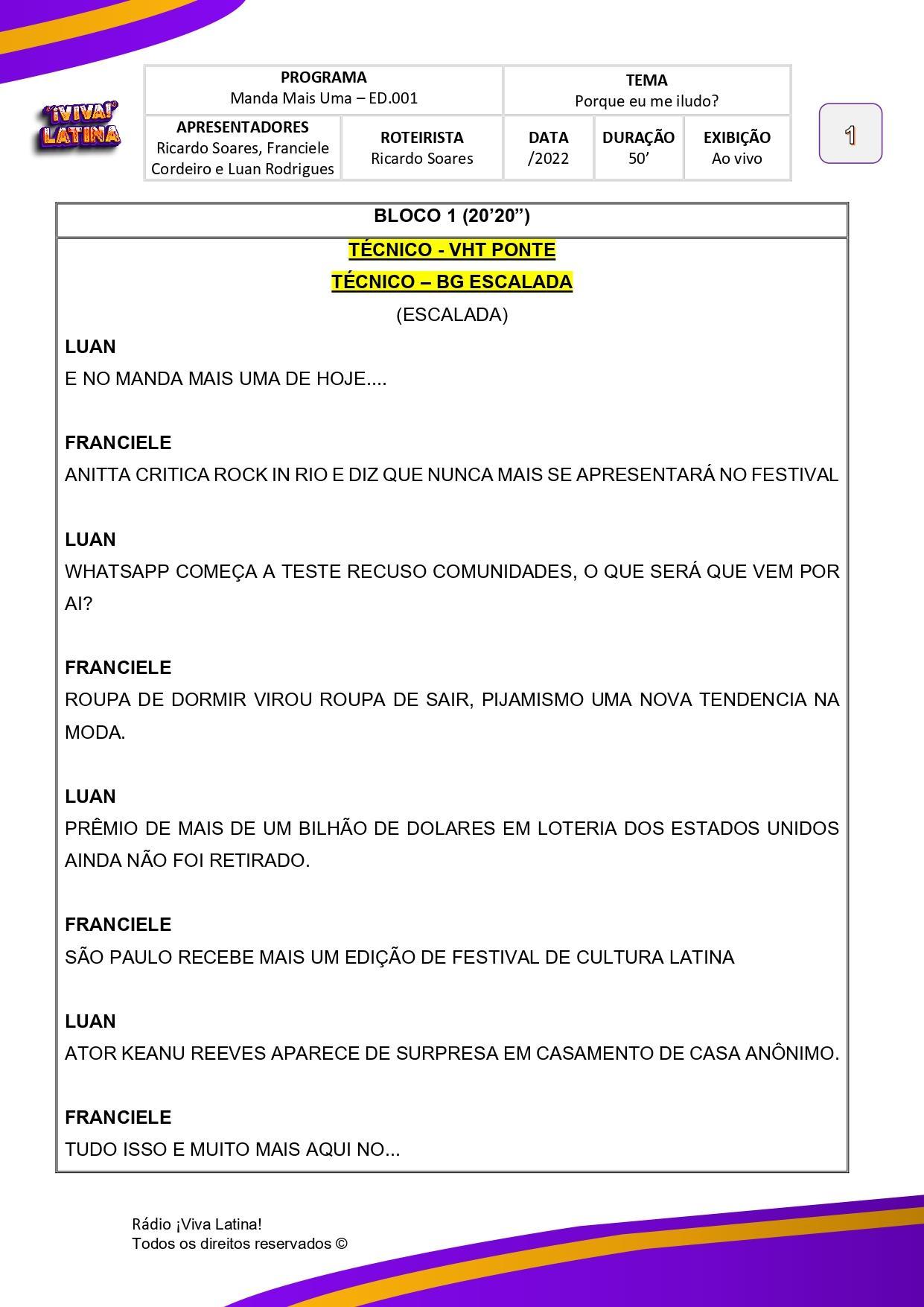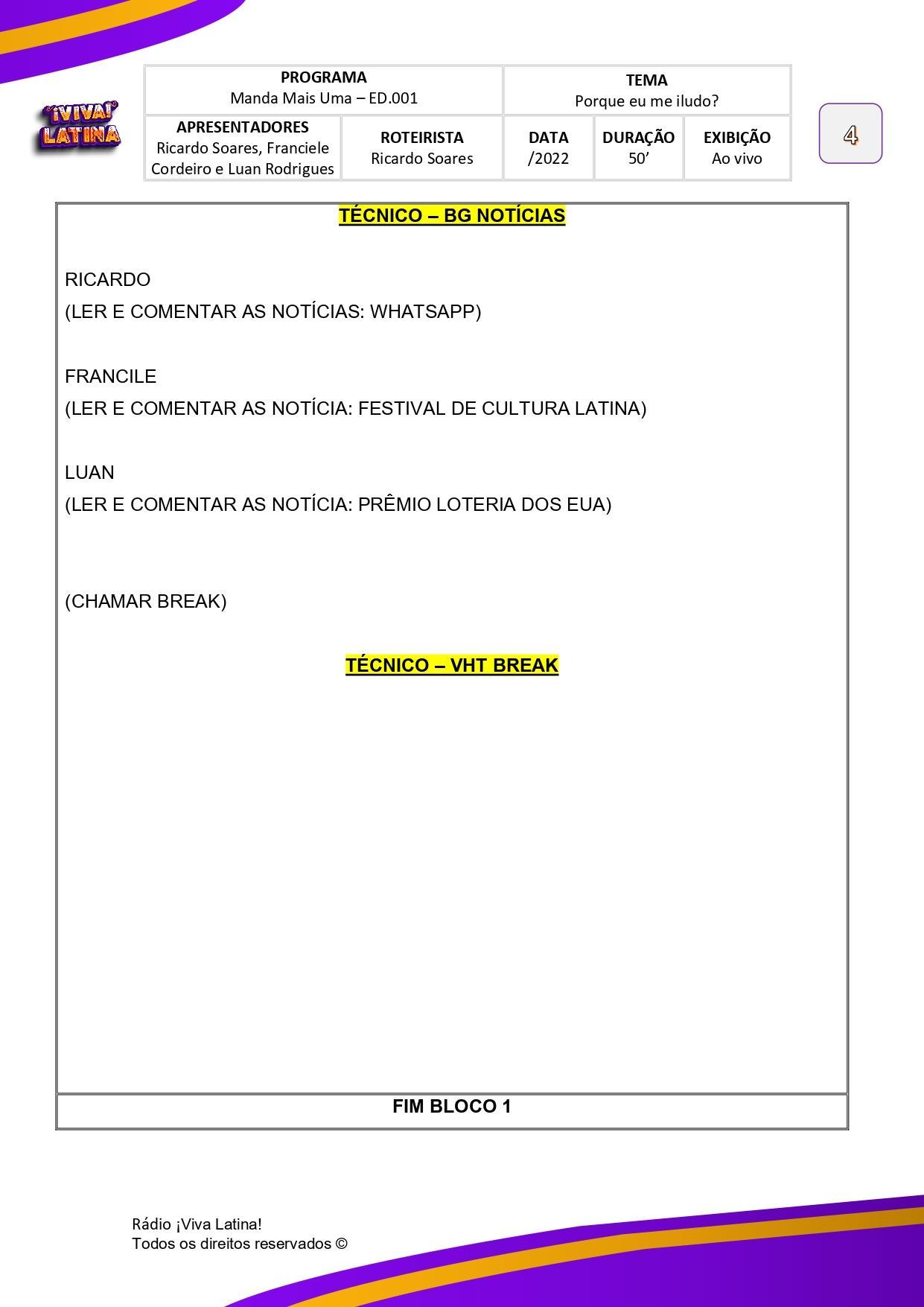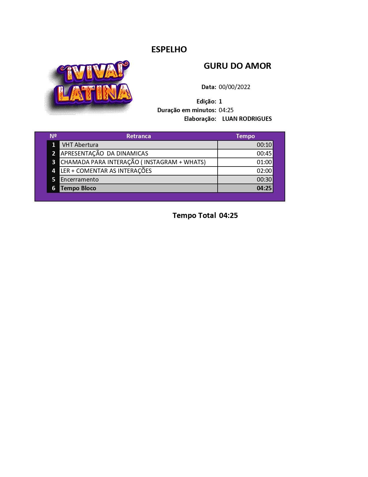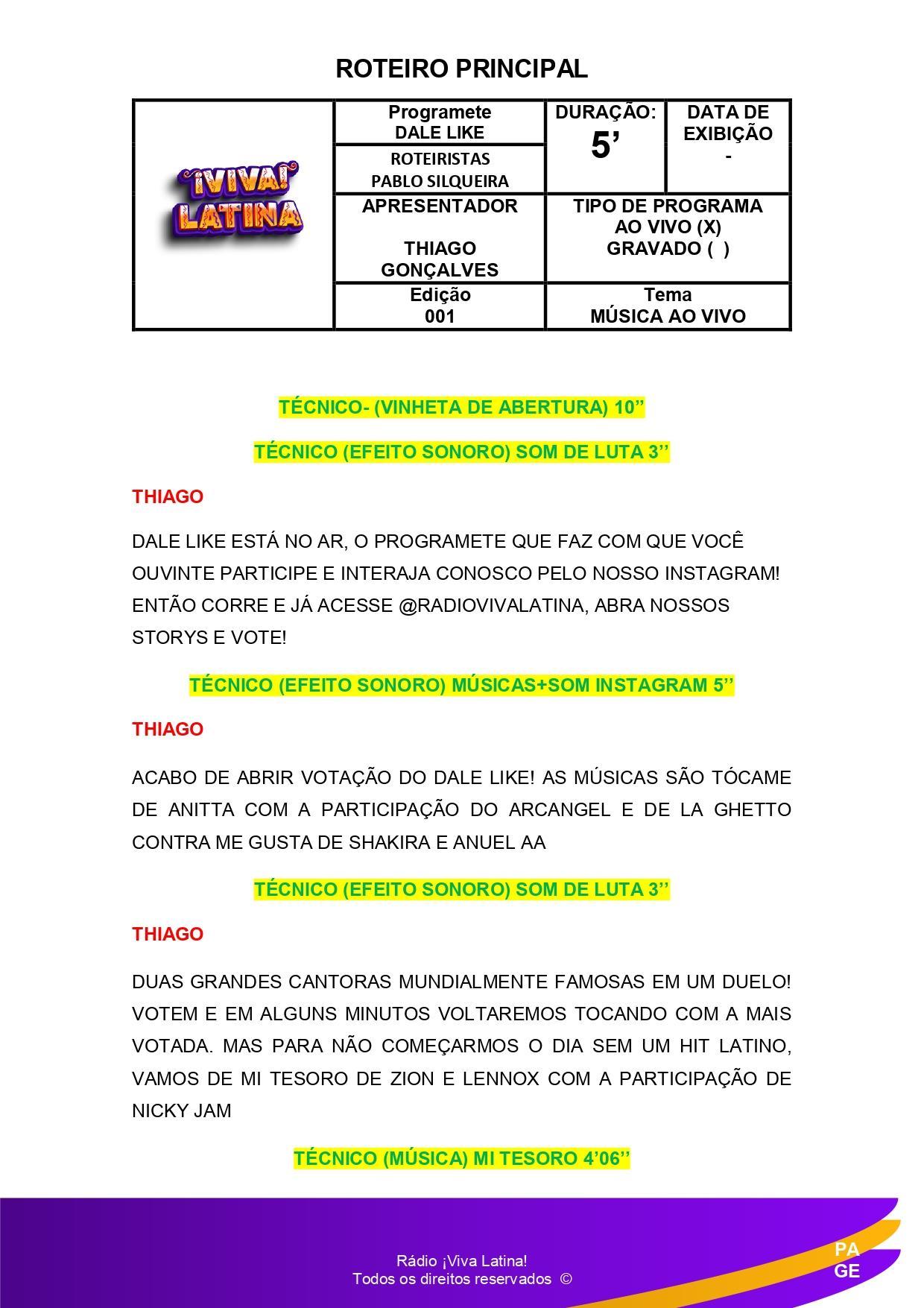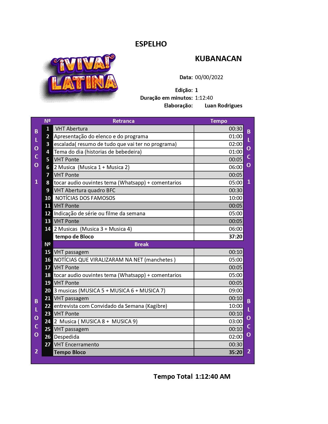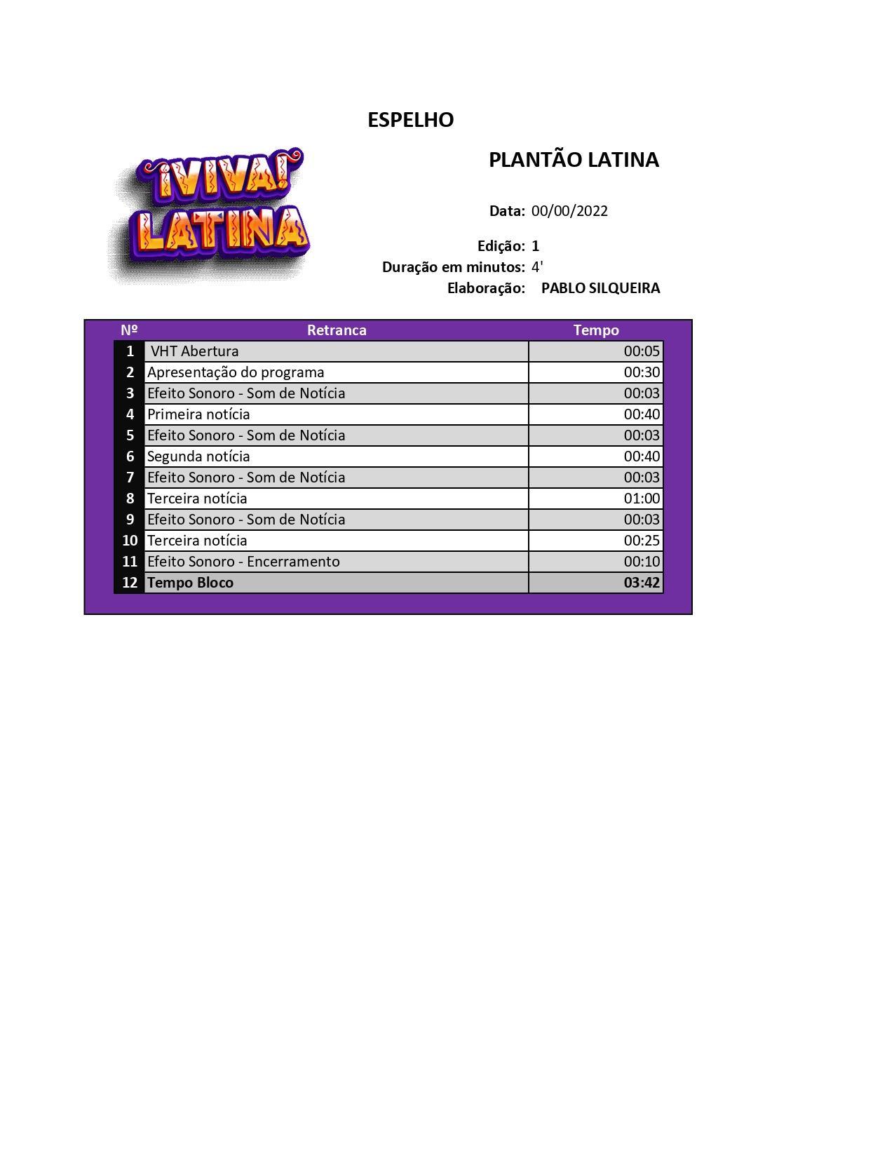 D.A.L.DO NASCIMENTO, J.R. DO NASCIMENTO, L.R. RIBEIRO, L. A. DA SILVA, P. V. R. SILQUEIRA, R. H. S. SILVA, T. G. SILVA, D. R. VOLPI. RÁDIO ¡ VIVA LATINA! Projeto Experimental – (Bacharel em Rádio, TV e Internet) Universidade Cruzeiro do Sul, São Paulo, 2022.