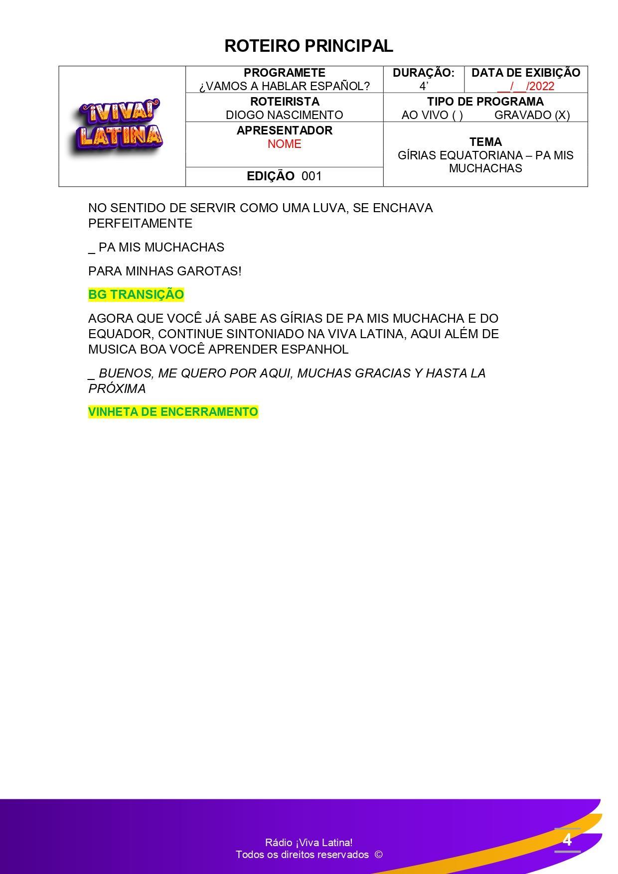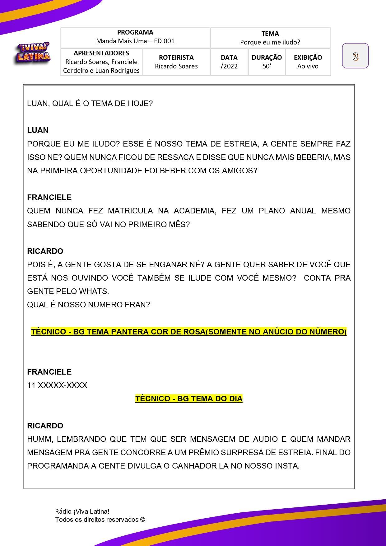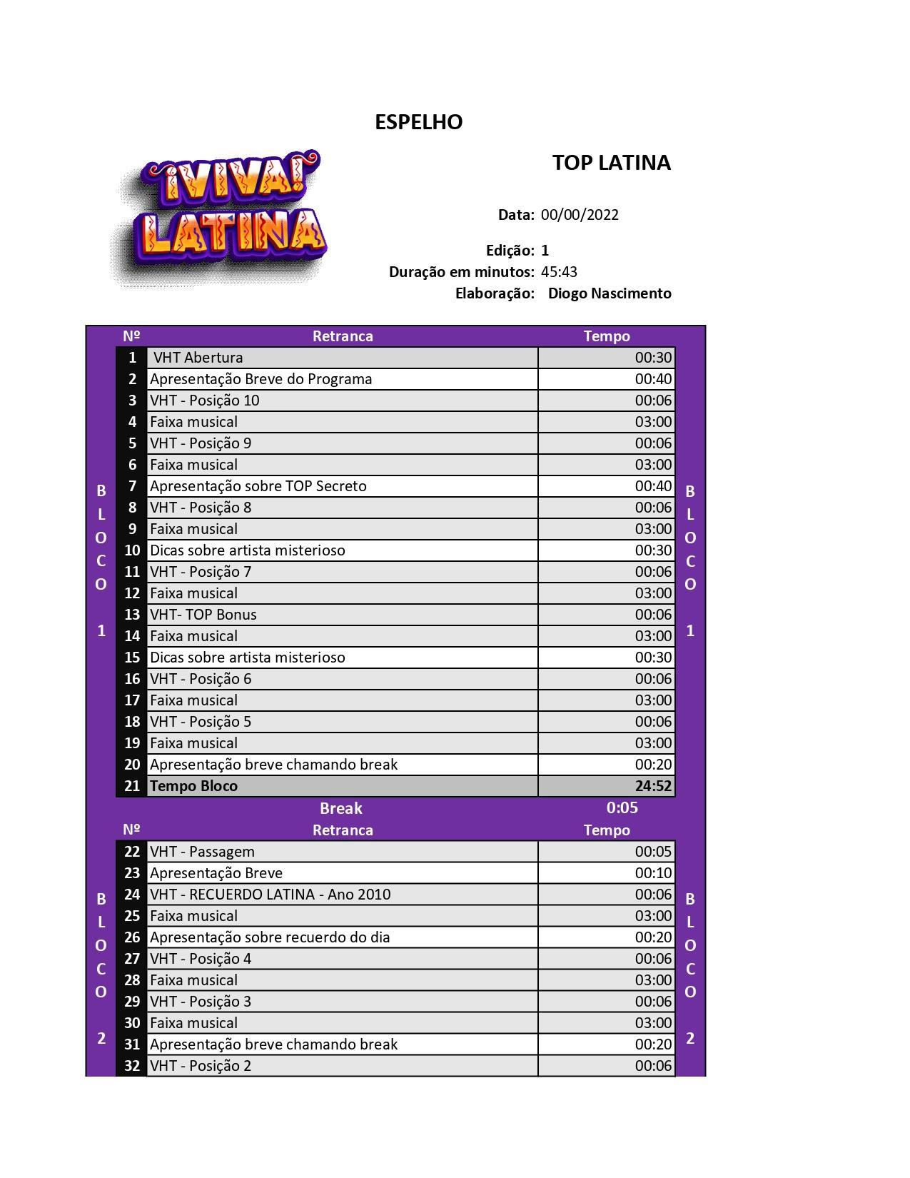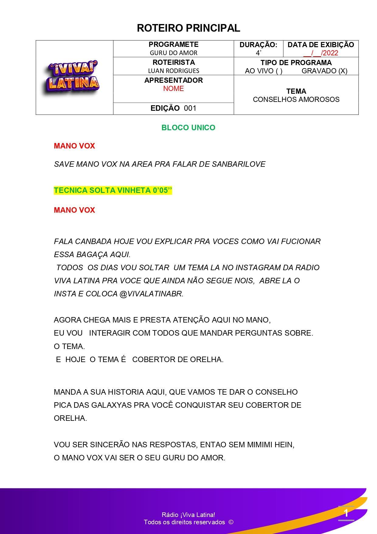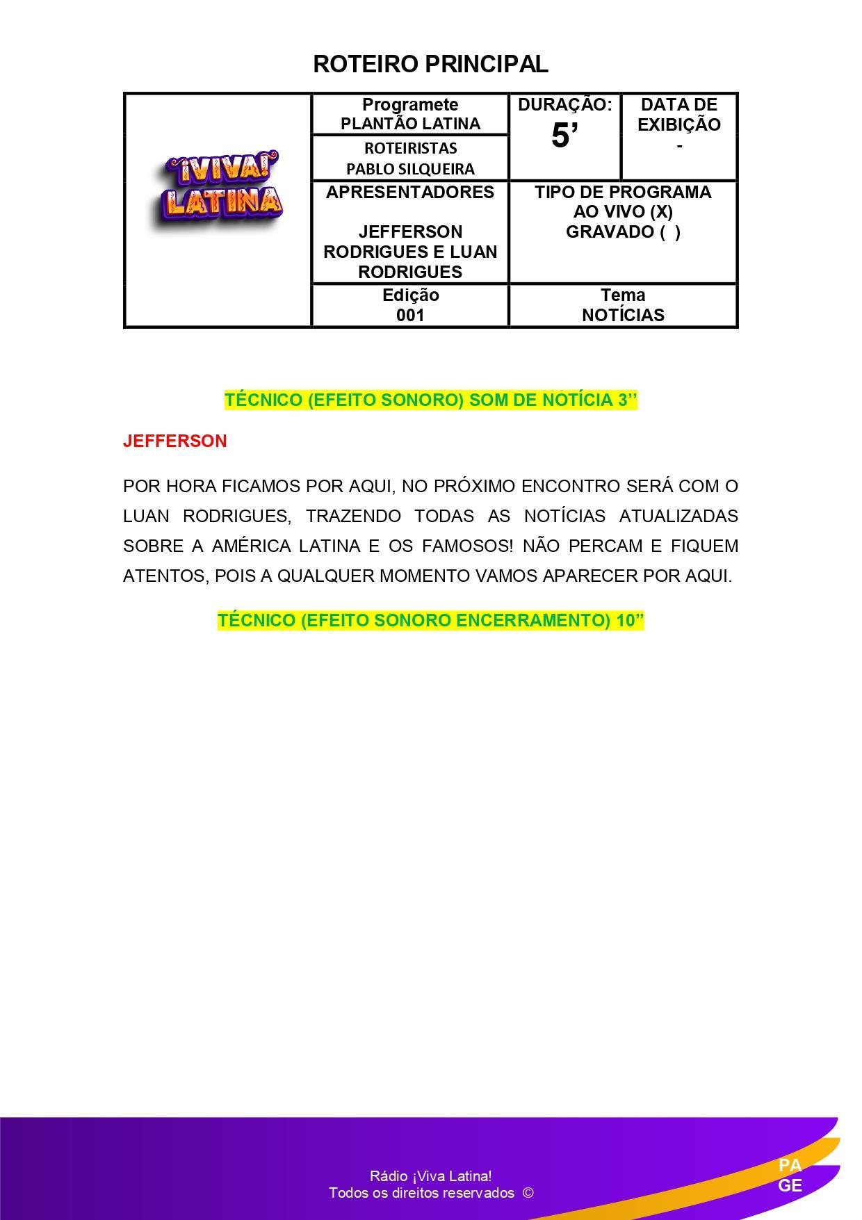 D.A.L.DO NASCIMENTO, J.R. DO NASCIMENTO, L.R. RIBEIRO, L. A. DA SILVA, P. V. R. SILQUEIRA, R. H. S. SILVA, T. G. SILVA, D. R. VOLPI. RÁDIO ¡ VIVA LATINA! Projeto Experimental – (Bacharel em Rádio, TV e Internet) Universidade Cruzeiro do Sul, São Paulo, 2022.